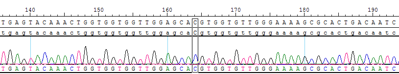 | Description | NRAS G12R is a hotspot mutation that lies within a GTP-binding region of the Nras protein (UniProt.org). G12R has not been characterized, but can be predicted to confer a loss of function on Nras protein based on the effects of HRAS G12R and NRAS G12R, which results in decreased GTPase activity, activation of downstream pathways, and transformation of cultured cells (PMID: 6092966, PMID: 26037647, PMID: 23455880). |
