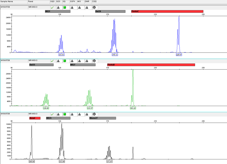 微衛(wèi)星是人類基因組的一段串聯(lián)重復序列,一般在1~6bp之間,又被稱作短串連重復(Short Tandem Repeats,STRs)或簡單重復序列(Simple Sequence Repeat,SSRs)。 微衛(wèi)星不穩(wěn)定(Microsatellite Instability,MSI)指的是微衛(wèi)星重復次數(shù)減少或者增加,微衛(wèi)星不穩(wěn)定的內在機制是錯配修復(MMR)系統(tǒng)失調,從而限制了糾正微衛(wèi)星自發(fā)的長度改變的體細胞突變的能力,體細胞突變積累,最終形成MSI。