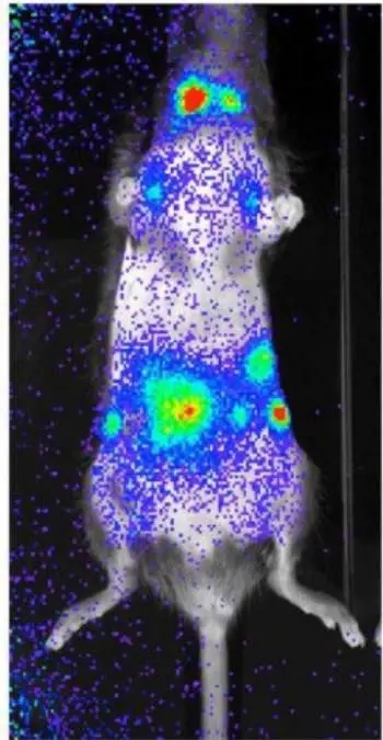 2.腫瘤轉移:由于活體成像技術直觀、靈敏度高的特點,成為研究腫瘤轉移的重要手段。動物體內(nèi)腫瘤轉移示例: