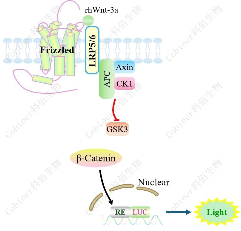 Wnt Effector Reporter Cell 報告基因藥靶模型很好的模擬了體內(nèi) WNT 的信號轉(zhuǎn)導過程,原理見下圖所示。