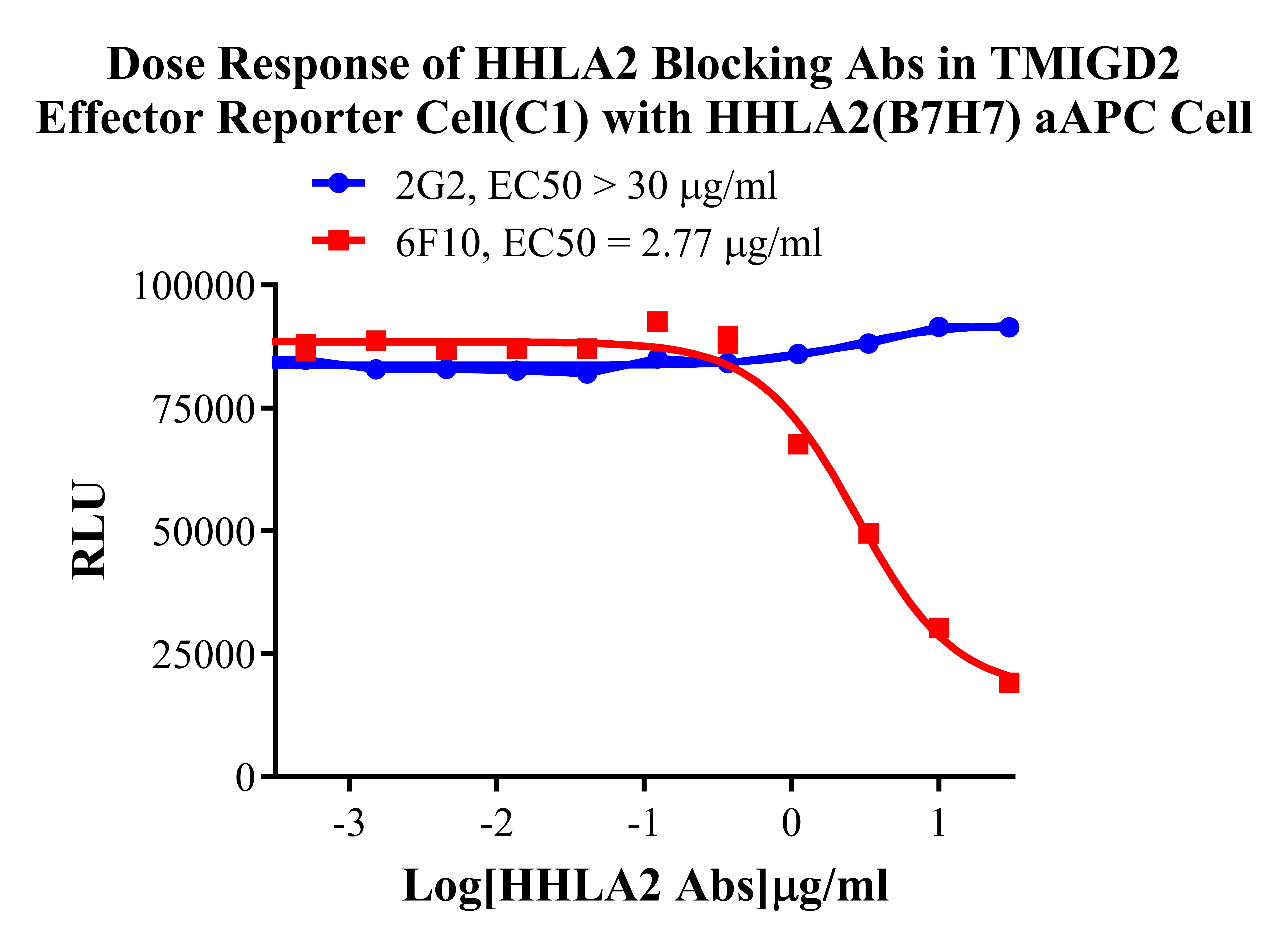 Figure 2. Dose Response of HHLA2 Blocking Abs in TMIGD2 Effector Reporter Cells (C1) With HHLA2(B7H7) aAPC Cell. |