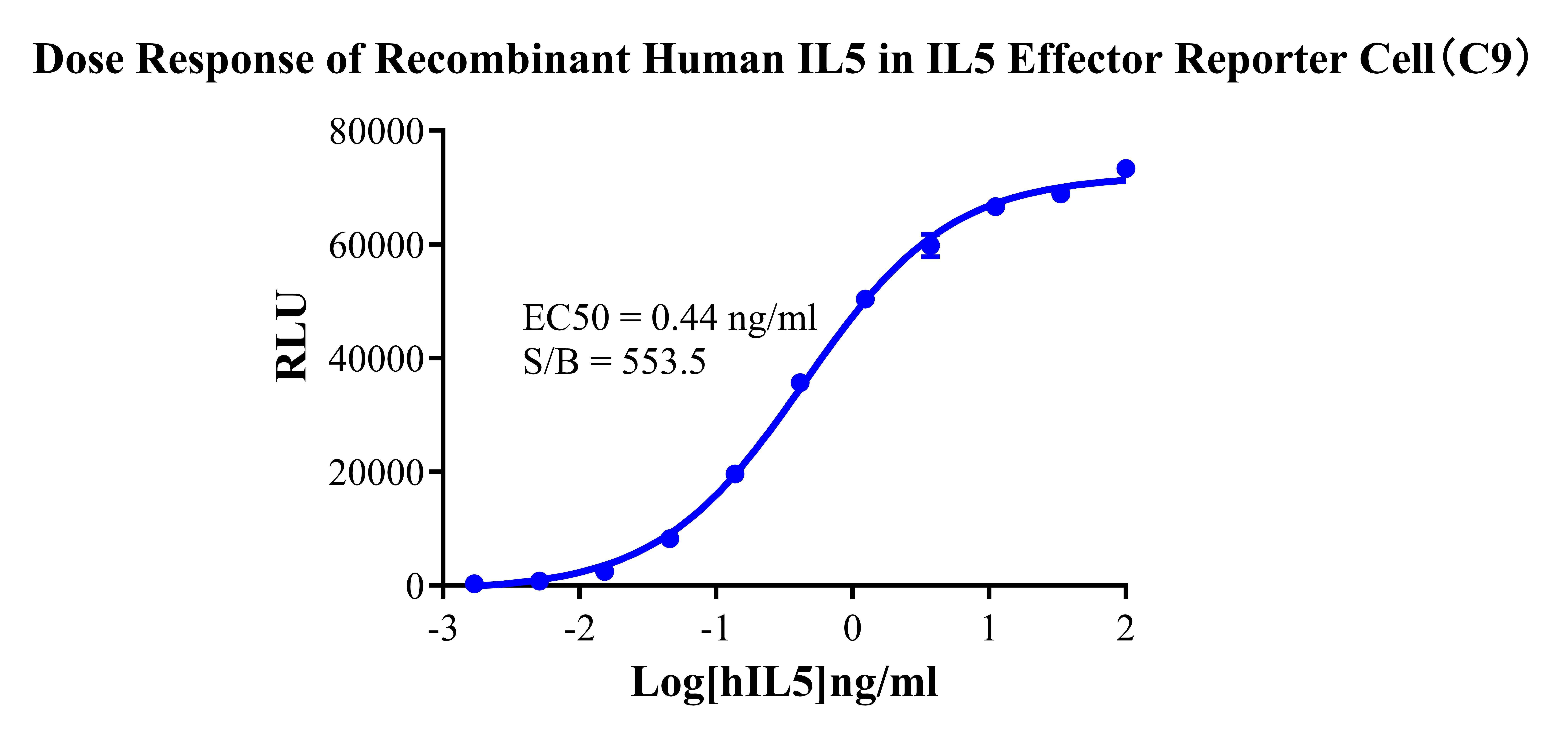 Figure 3. Dose Response of Recombinant Human IL5 in lL5 Effector Reporter Cell (C9). |