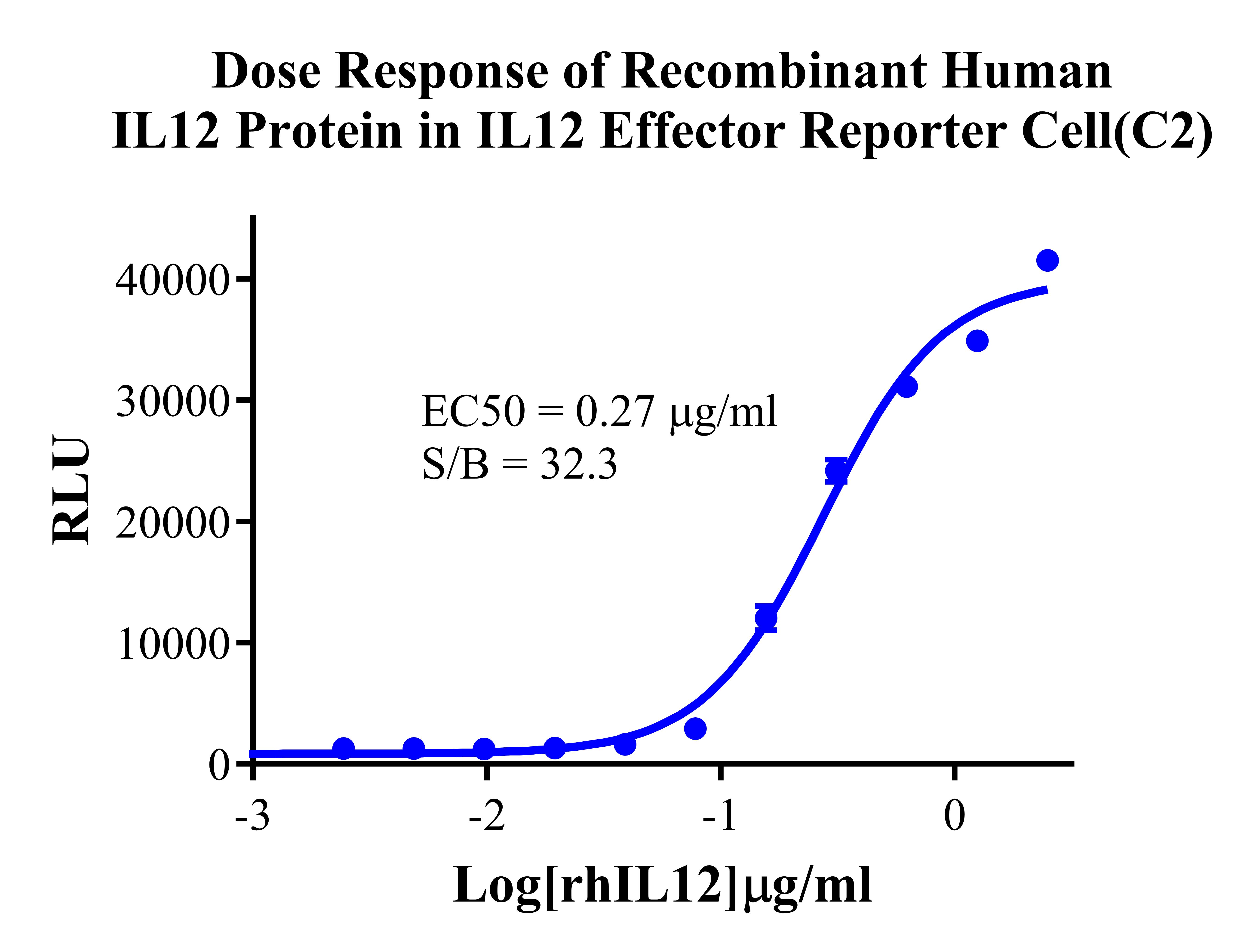 Figure 2. Dose Response of Recombinant Human IL12 Protein in IL12 Effector Reporter Cells (C2). |