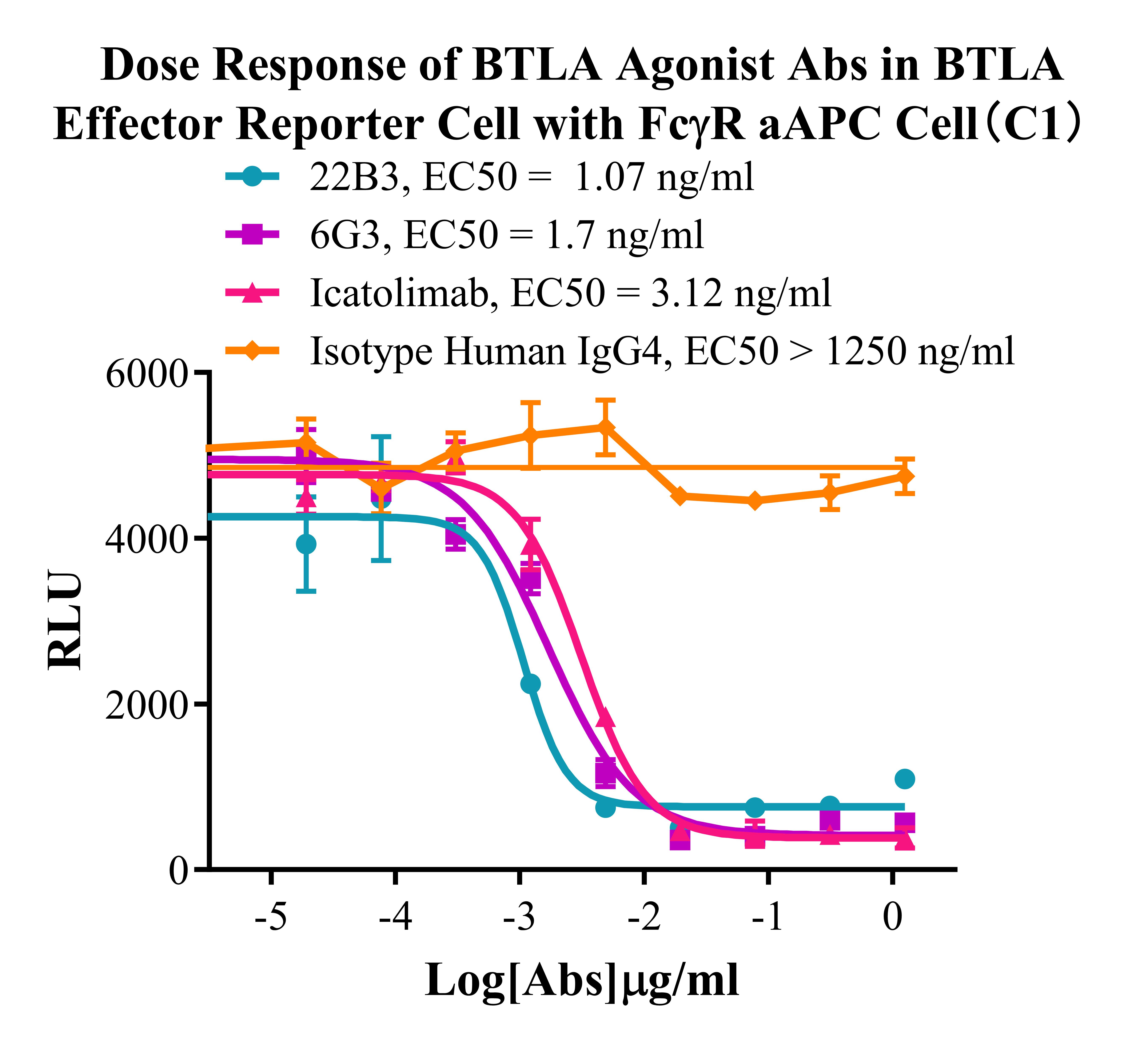 Figure 3. Dose Response of BTLA Agonist Abs in BTLA Effector Reporter Cells With FCγR aAPC Cell(C1).