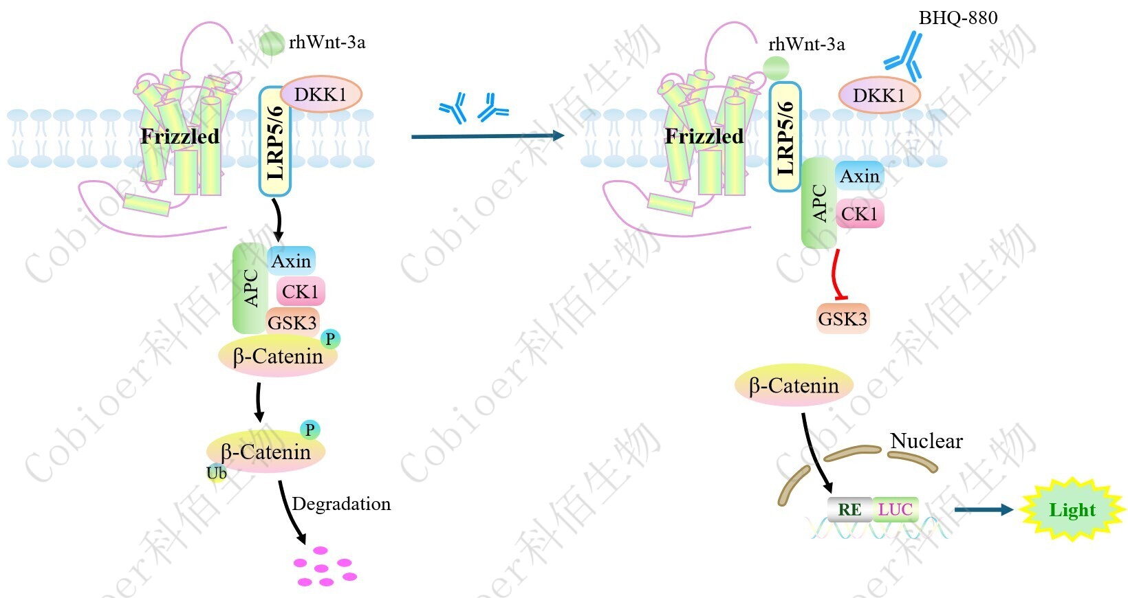 DKK1 Effector Reporter Cell 報(bào)告基因藥靶模型很好的模擬了體內(nèi) WNT 的信號(hào)轉(zhuǎn)導(dǎo)過(guò)程,原理見(jiàn)下圖所示。![]() Figure 1. DKK1 Effector Reporter Cell 模型原理圖 |