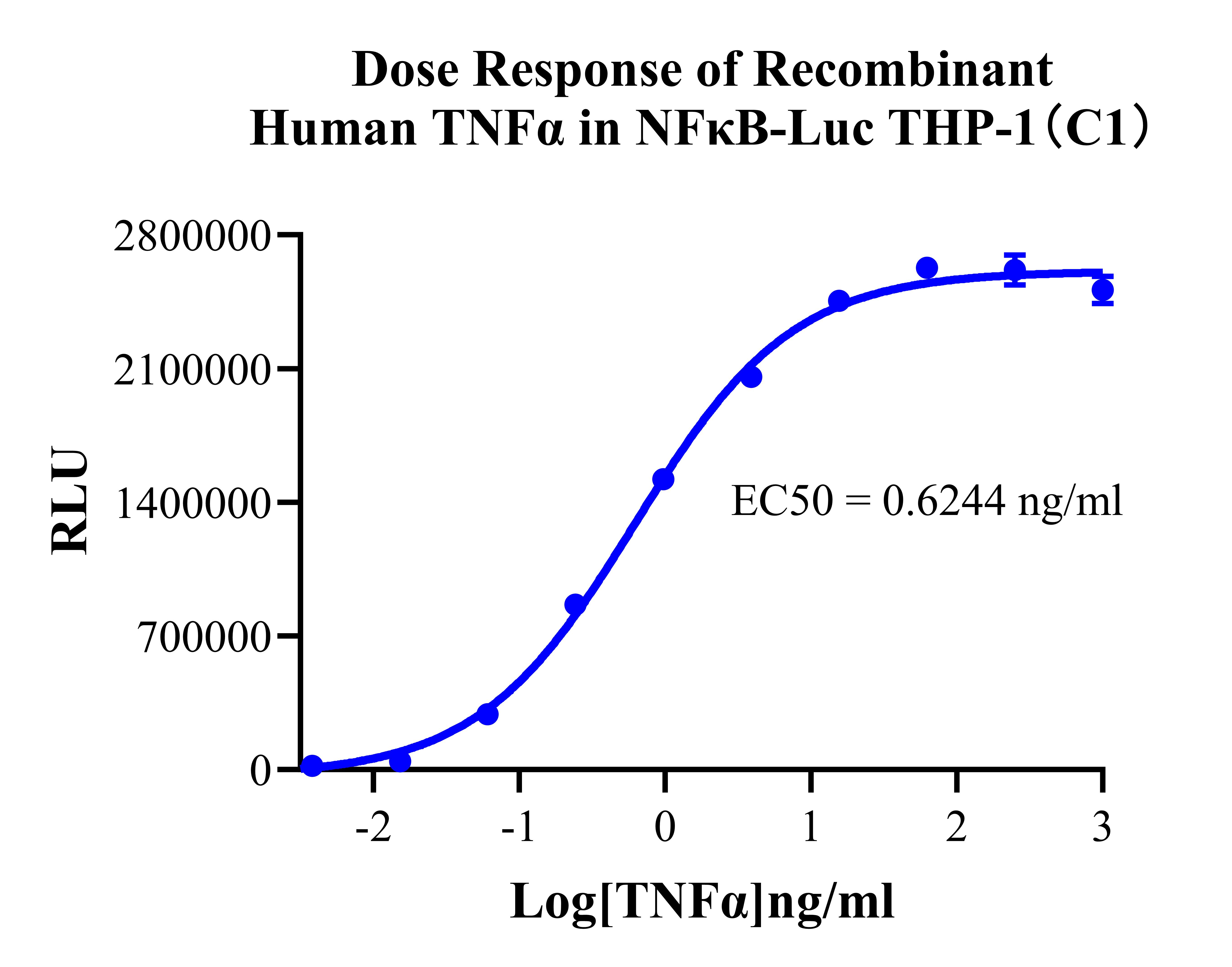 V. Representative Data![]() Figure 2. Dose Response of Recombinant Human TNFα in NFκB-Luc THP-1(C1). |