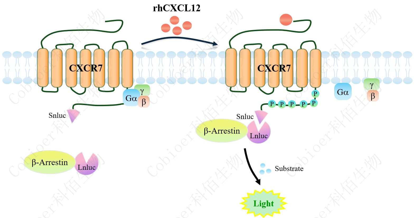 CXCR7 β-Arrestin CHO 報(bào)告基因藥靶模型很好的模擬了體內(nèi) CXCR7/β-Arrestin 的信號轉(zhuǎn)導(dǎo)過程,原理見下圖所示。