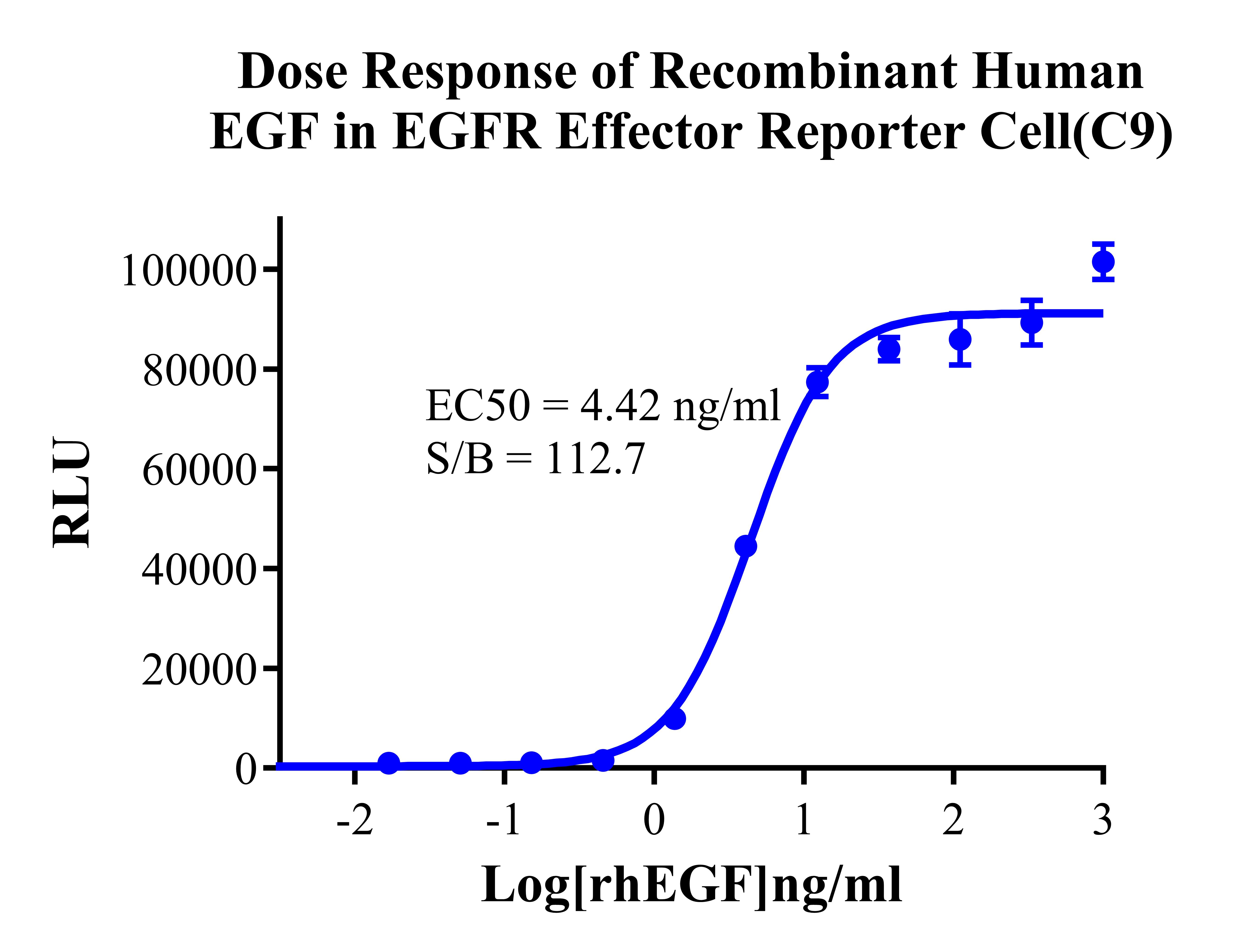 III. Representative Data![]() Figure 2. Recombinant EGFR Effector Reporter Cell stably expressing EGFR. ![]() Figure 3. Dose Response of Recombinant Human EGF in EGFR Effector Reporter Cell (C9). ![]() Figure 4. Inhibition of rhEGF-induced Reporter Activity by EGFR Blocking Ab in EGFR Effector Reporter Cell (C9). ![]() Figure 5. Inhibition of rhEGF-induced Reporter Activity by EGFR Inhibitor in EGFR Effector Reporter Cell (C9). |