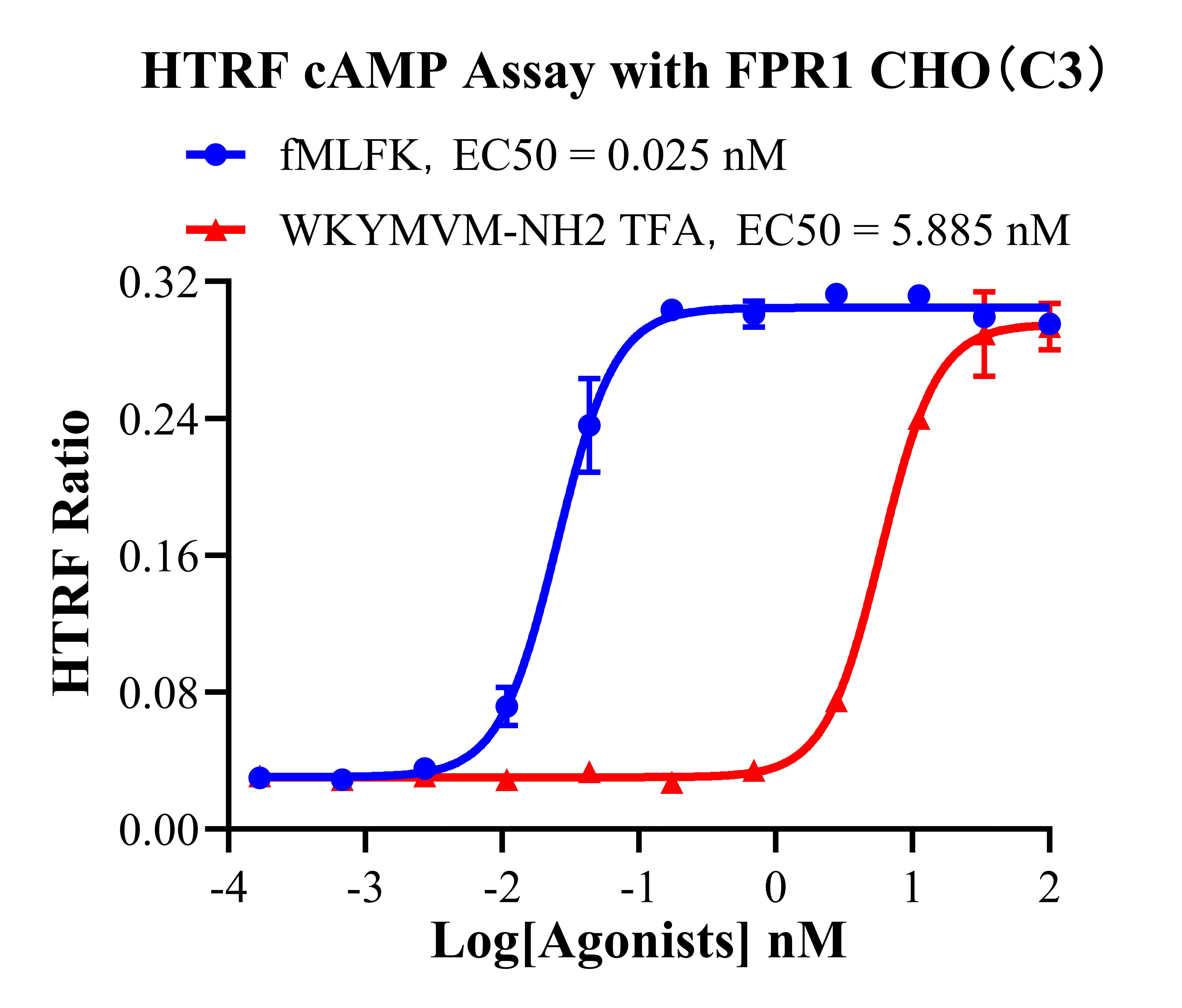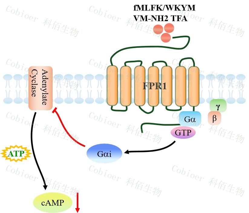 甲酰肽受體(FPR)屬于 G 蛋白偶聯(lián)受體(GPCR)家族,是趨化受體和模式識別受 體(PRR),可識別細菌和線粒體衍生的甲?;摹PRs 家族包括三個成員(FPR1、 FPR2 和 FPR3),它們在多種組織和細胞類型中廣泛表達,調(diào)節(jié)多種生物功能,如血管生 成、細胞增殖和防止細胞死亡。 |