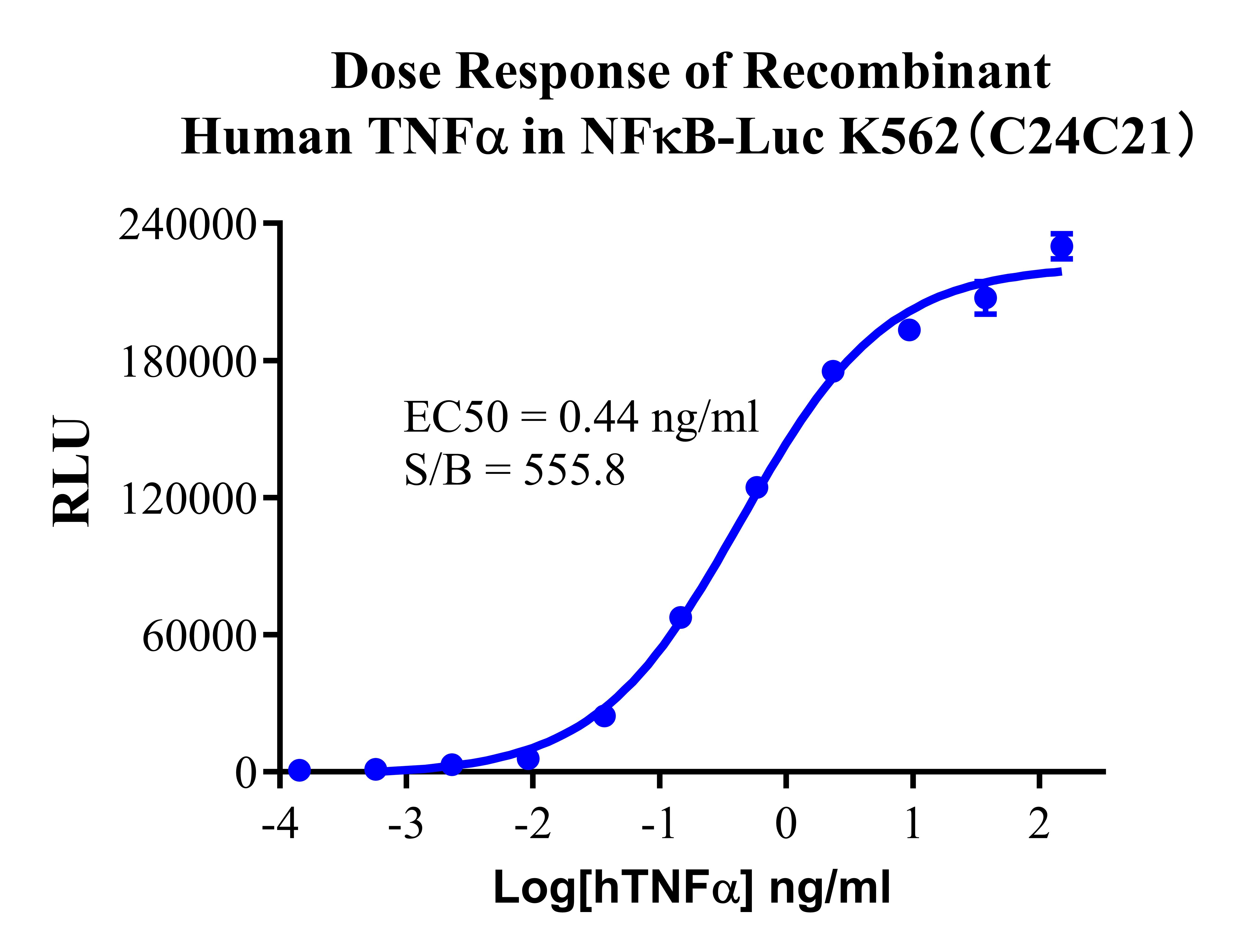 NFκB-Luc K562 報(bào)告基因細(xì)胞,是由 NFκB 調(diào)控并表達(dá) Luc 熒光素酶報(bào) 告基因的 K562 細(xì)胞。TNFα與受體結(jié)合,激活 NF-κB 的原理見下圖所示。