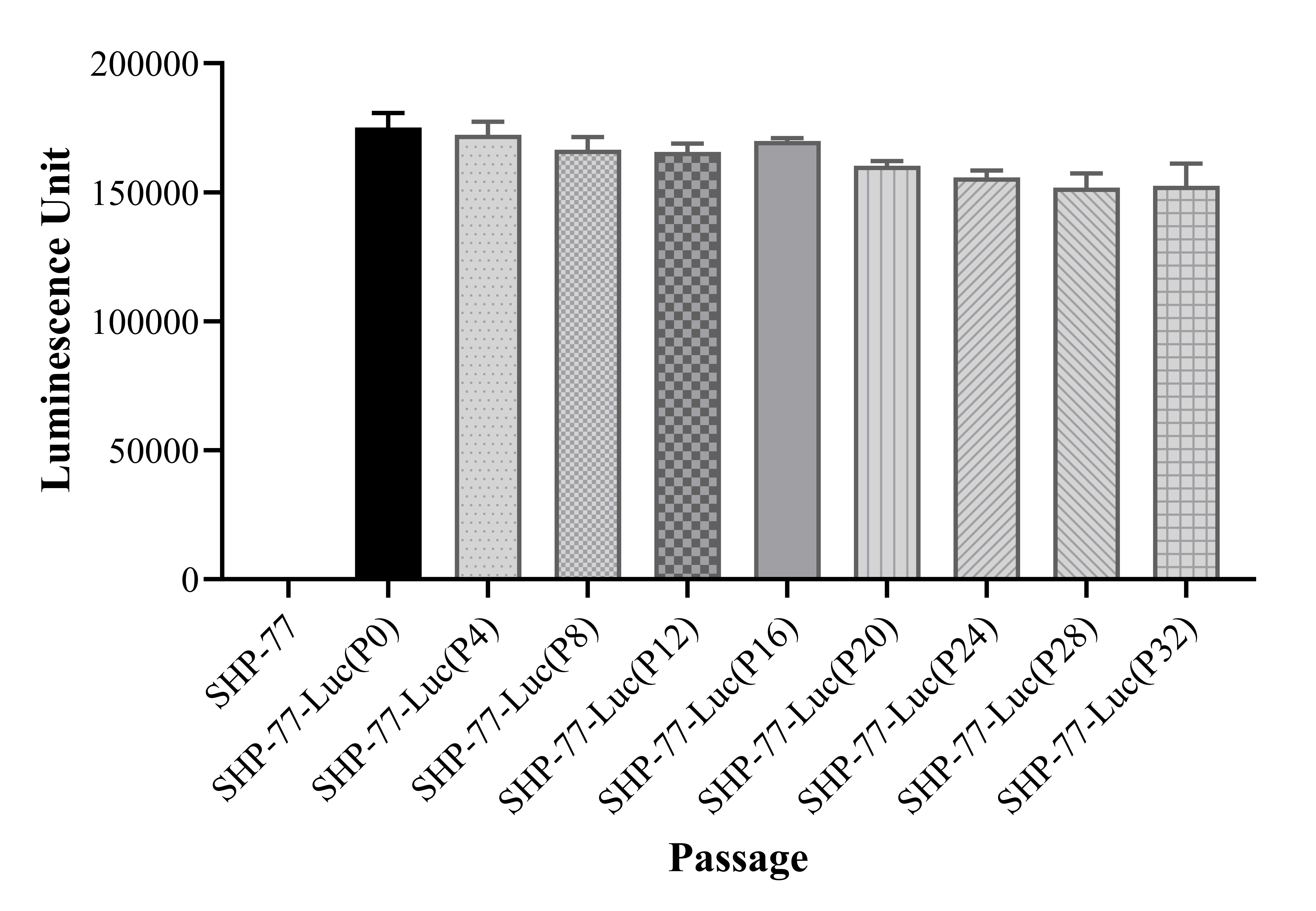 Figure 1. Stablity test results. SHP-77-Luc showed at least 32 passage stability with similar luminescence unit.