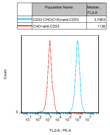 | CD33 CHO 細(xì)胞,在 CHO-K1 細(xì)胞的基礎(chǔ)上,穩(wěn)定表達(dá)人 CD33。 | |