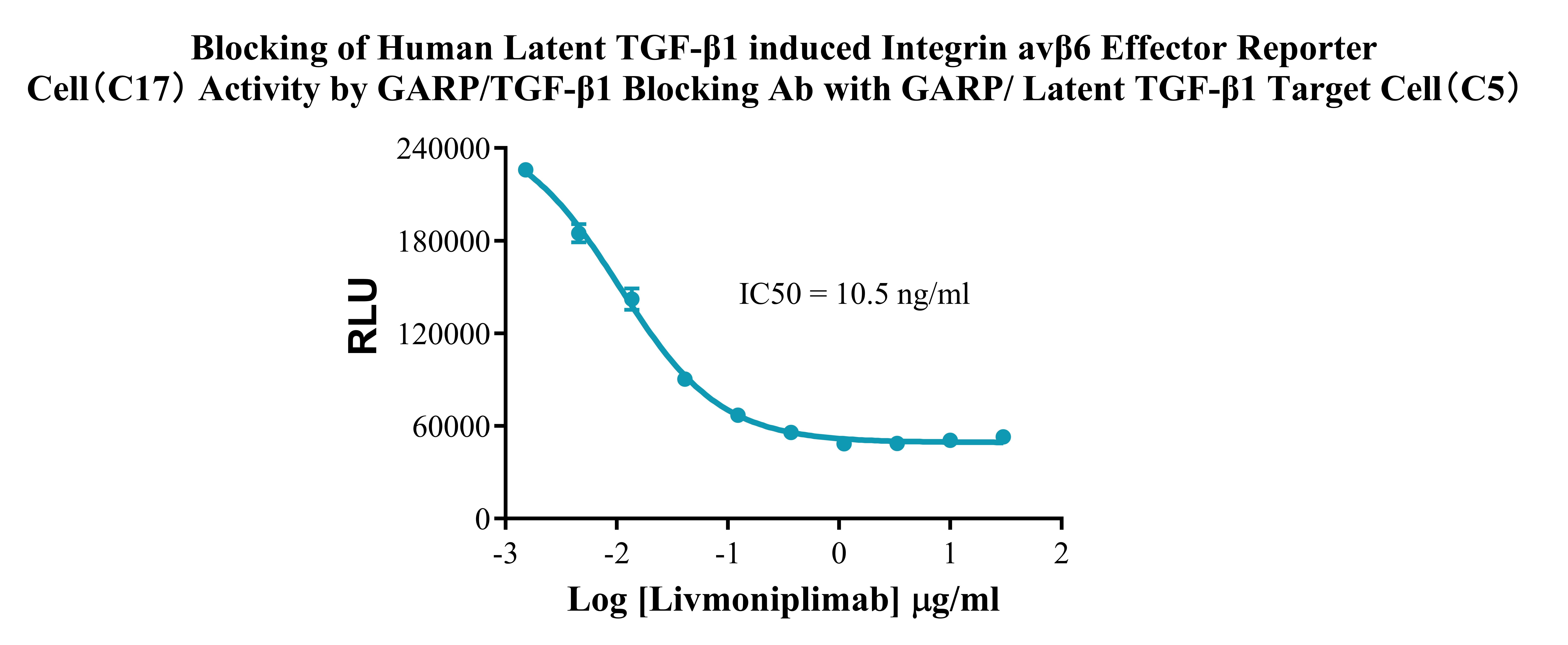 Figure 6.Blocking of Human Latent TGF-β1 induced Integrin avβ6 Effector Reporter Cell(C17) Activity by GARP/TGF-β1 Blocking Ab with GARP/Latent TGF-β1 Target Cell(C5).