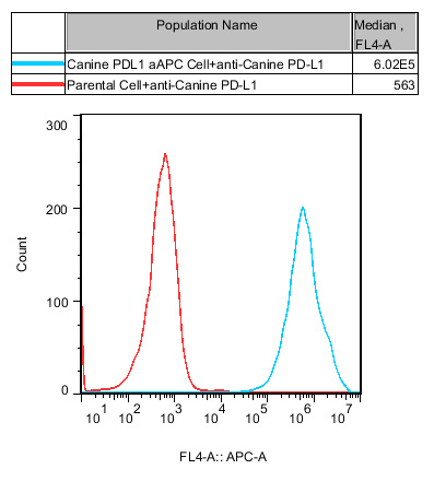 Canine PDL1 aAPC Cell 作為 Canine PD1 Effector Reporter Cell 的靶細(xì)胞,Canine PDL1 aAPC Cell 藥靶模型很好的模擬了體內(nèi) PD1&PDL1 的信號轉(zhuǎn)導(dǎo)過程,原理見下圖所示。![]() Figure 1. Canine PDL1 aAPC Cell 細(xì)胞模型原理圖 |