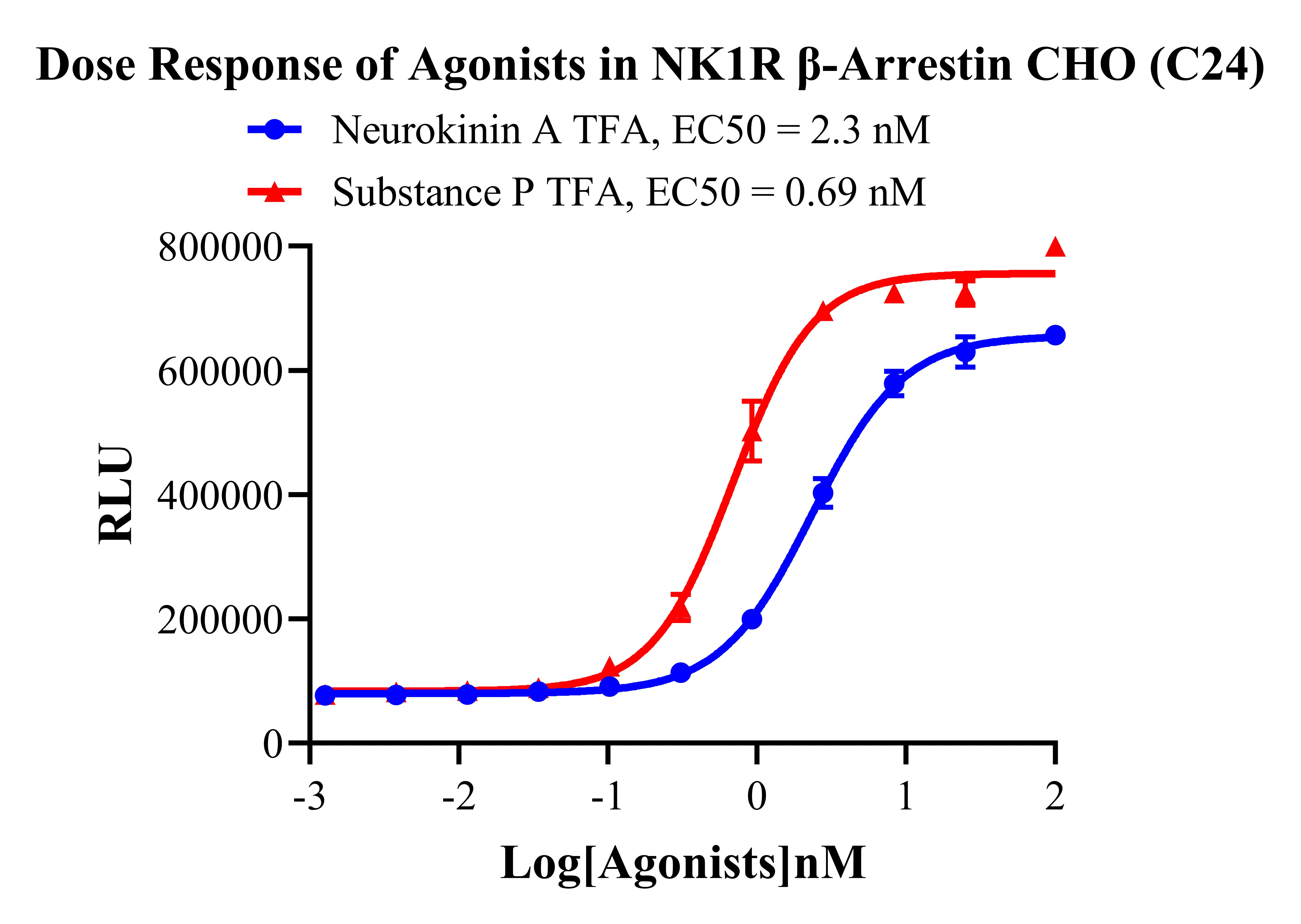 Figure 2. Dose Response of Agonists in NK1R β-Arrestin CHO (C24). |