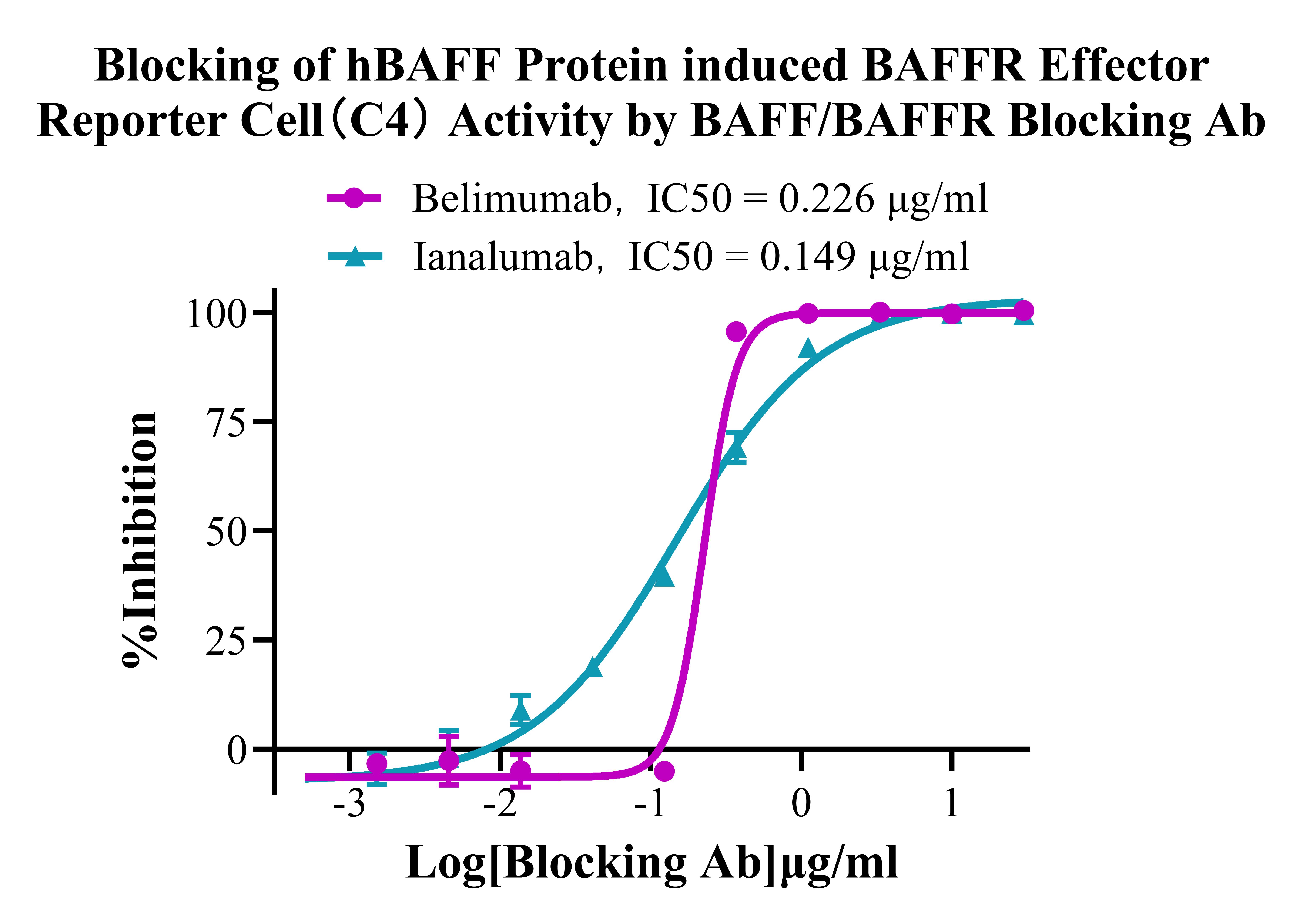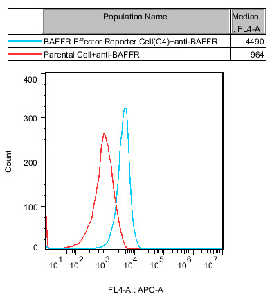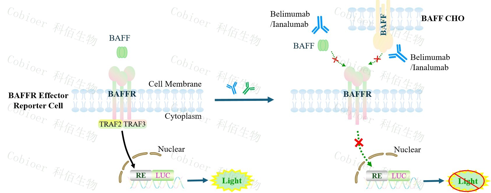 BAFFR Effector Reporter Cell 報告基因藥靶模型很好的模擬了體內(nèi) BAFF 的信號轉(zhuǎn)導過程,原理見下圖所示。![]() Figure 1. BAFFR Effector Reporter Cell 細胞模型原理圖 |