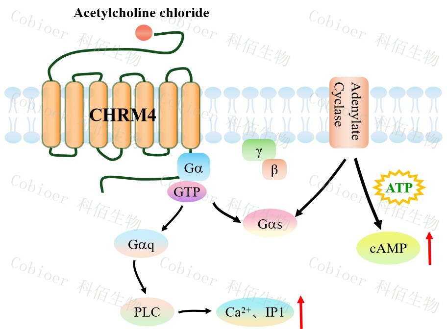 | 毒蕈堿乙酰膽堿受體(MAChRs,簡(jiǎn)稱 M 受體)參與中樞神經(jīng)系統(tǒng)的運(yùn)動(dòng)控制、體溫 調(diào)節(jié)、心血管調(diào)節(jié)和記憶,介導(dǎo)周圍神經(jīng)系統(tǒng)的平滑肌收縮、腺體分泌和心率、調(diào)節(jié)心肌 收縮力。CHRM4 作為 Gi/o 偶聯(lián)型毒蕈堿受體,中樞神經(jīng)系統(tǒng)高表達(dá),其內(nèi)源性配體乙酰 膽堿(ACh)激活后優(yōu)先通過(guò) Gi/oα亞基抑制腺苷酸環(huán)化酶,同時(shí)釋放 Gβγ二聚體。 | |
