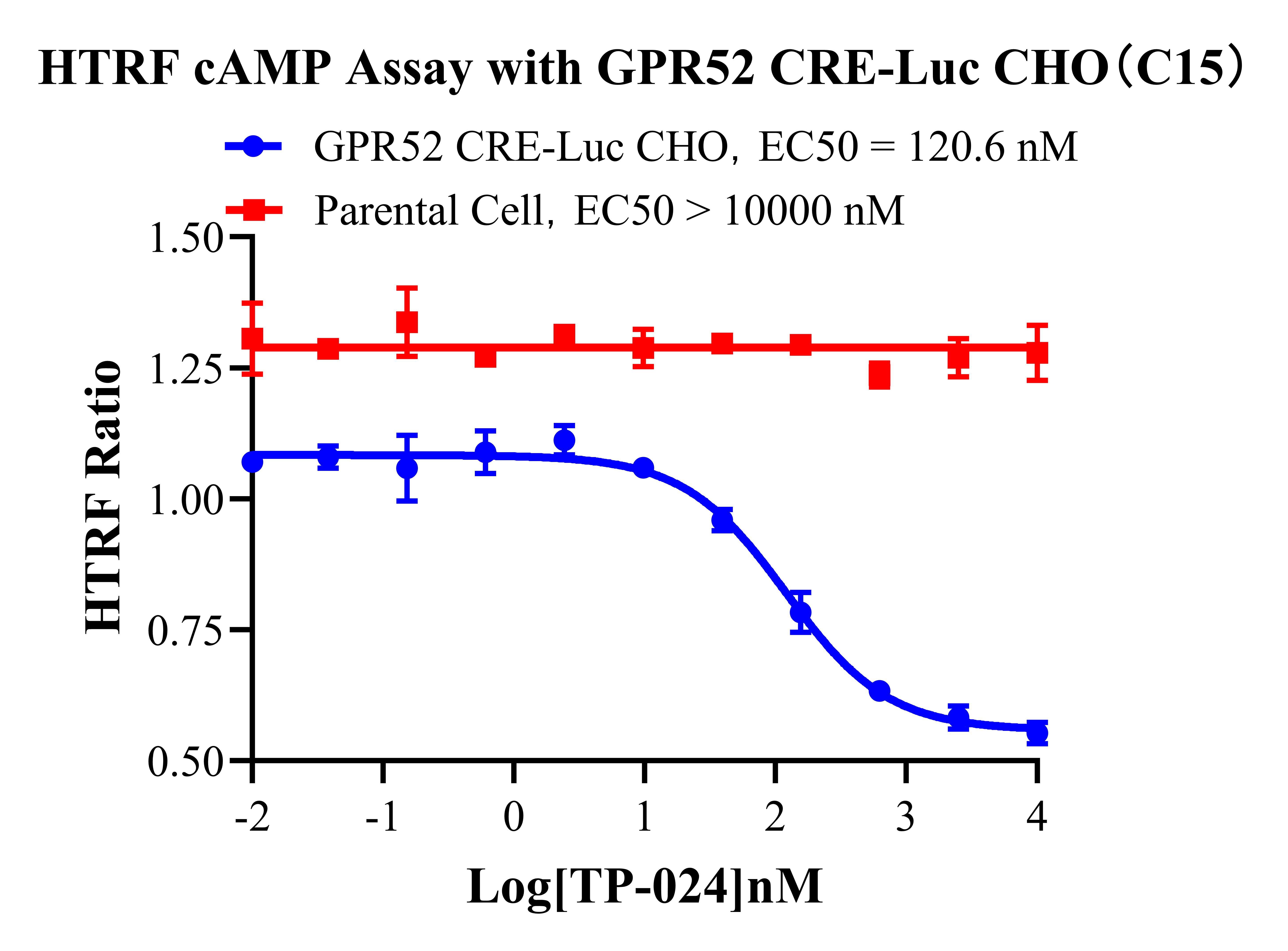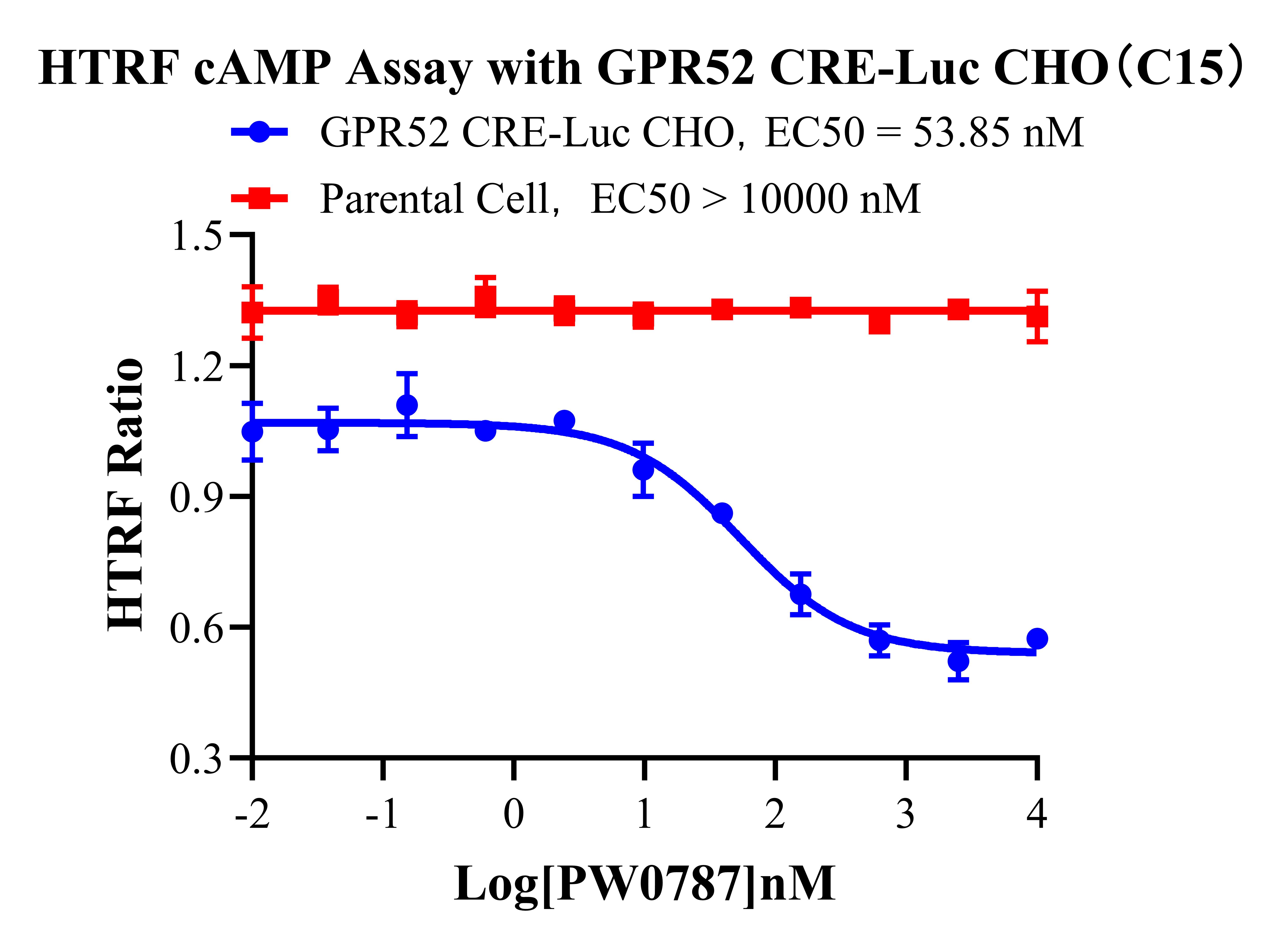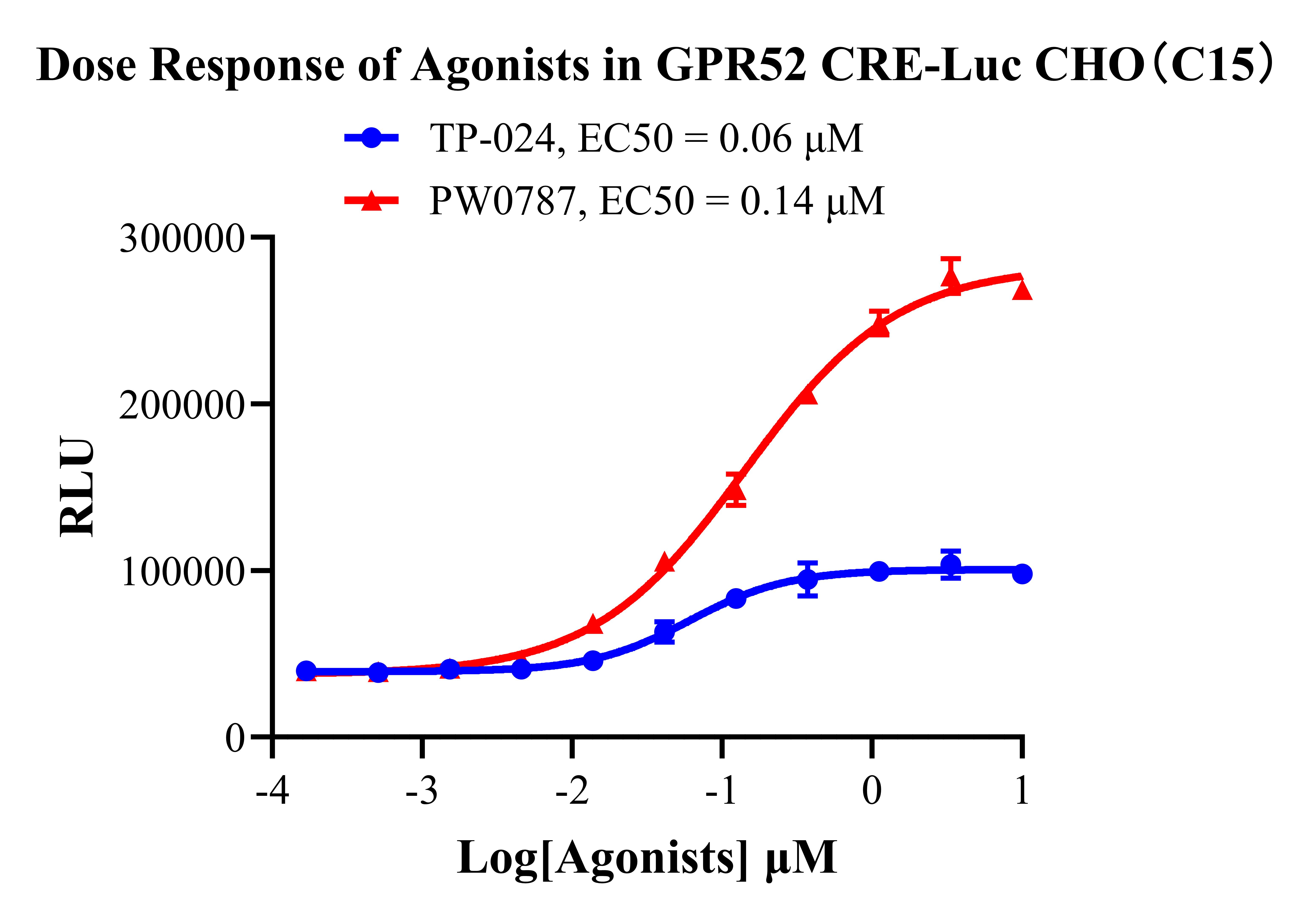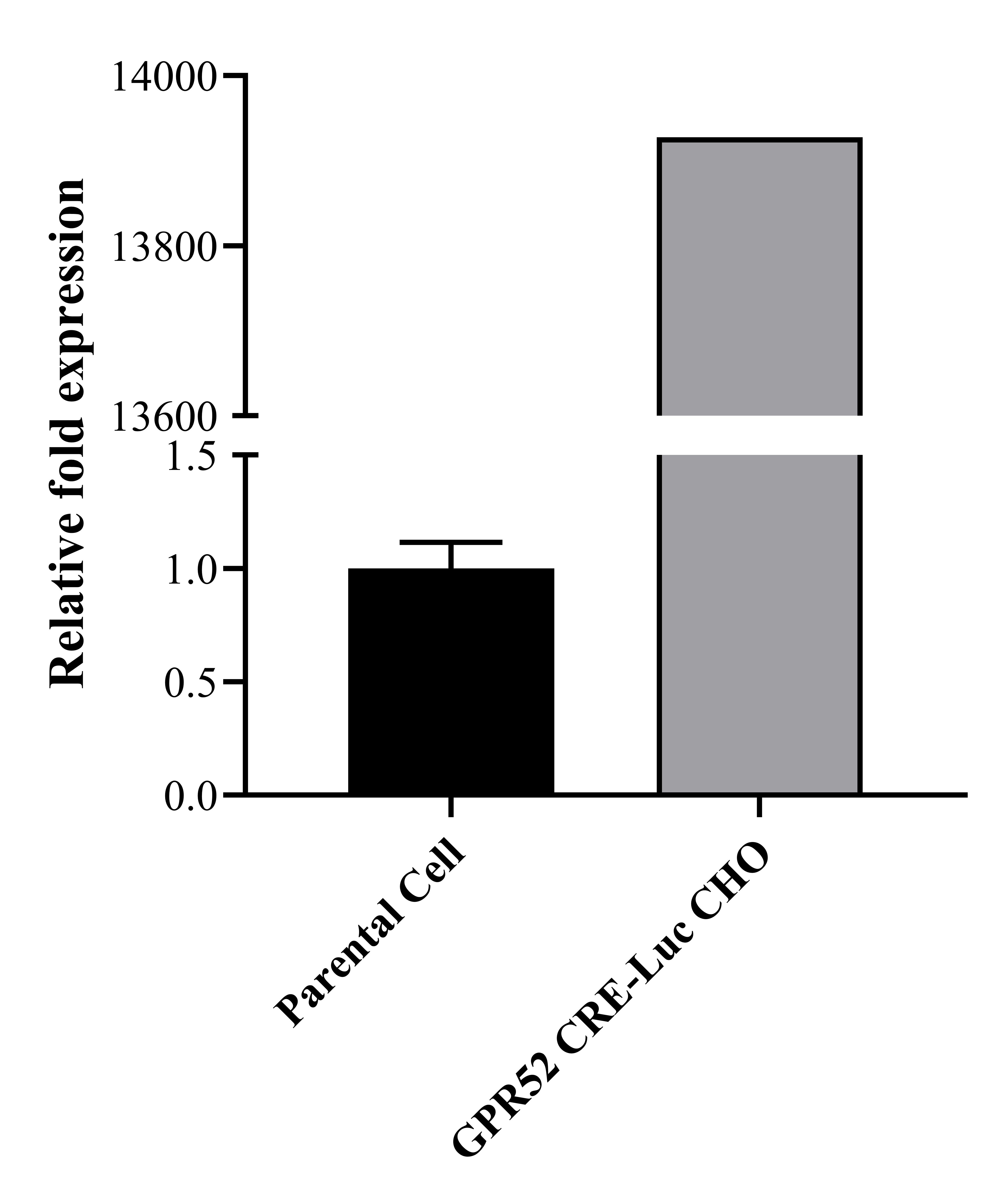 GPR52 CRE-Luc CHO 報(bào)告基因藥靶模型很好的模擬了體內(nèi) GPR52 的信號(hào)轉(zhuǎn)導(dǎo)過(guò)程, 原理見下圖所示。![]() Figure 1. GPR52 CRE-Luc CHO 細(xì)胞模型原理圖 |
