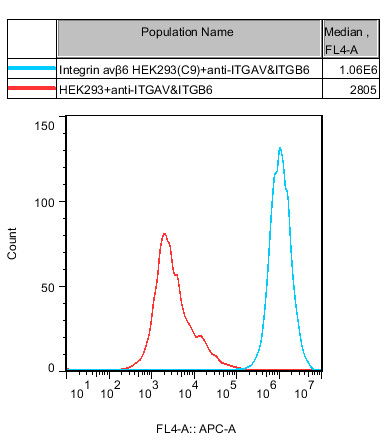 Integrin avβ6 HEK293 細(xì)胞,在 HEK293 細(xì)胞的基礎(chǔ)上,穩(wěn)定表達(dá)人ITGAV 和人 ITGB6。 |