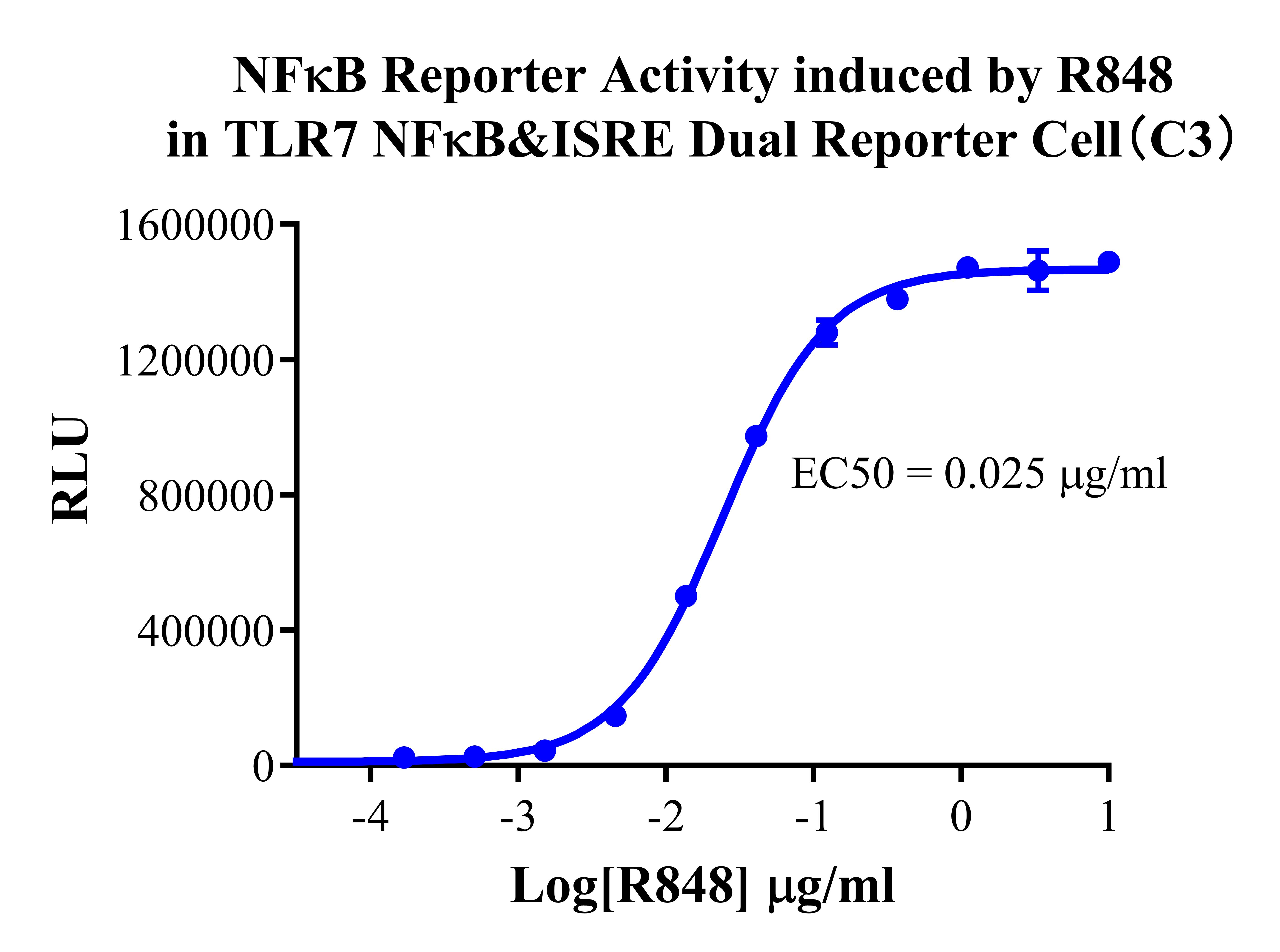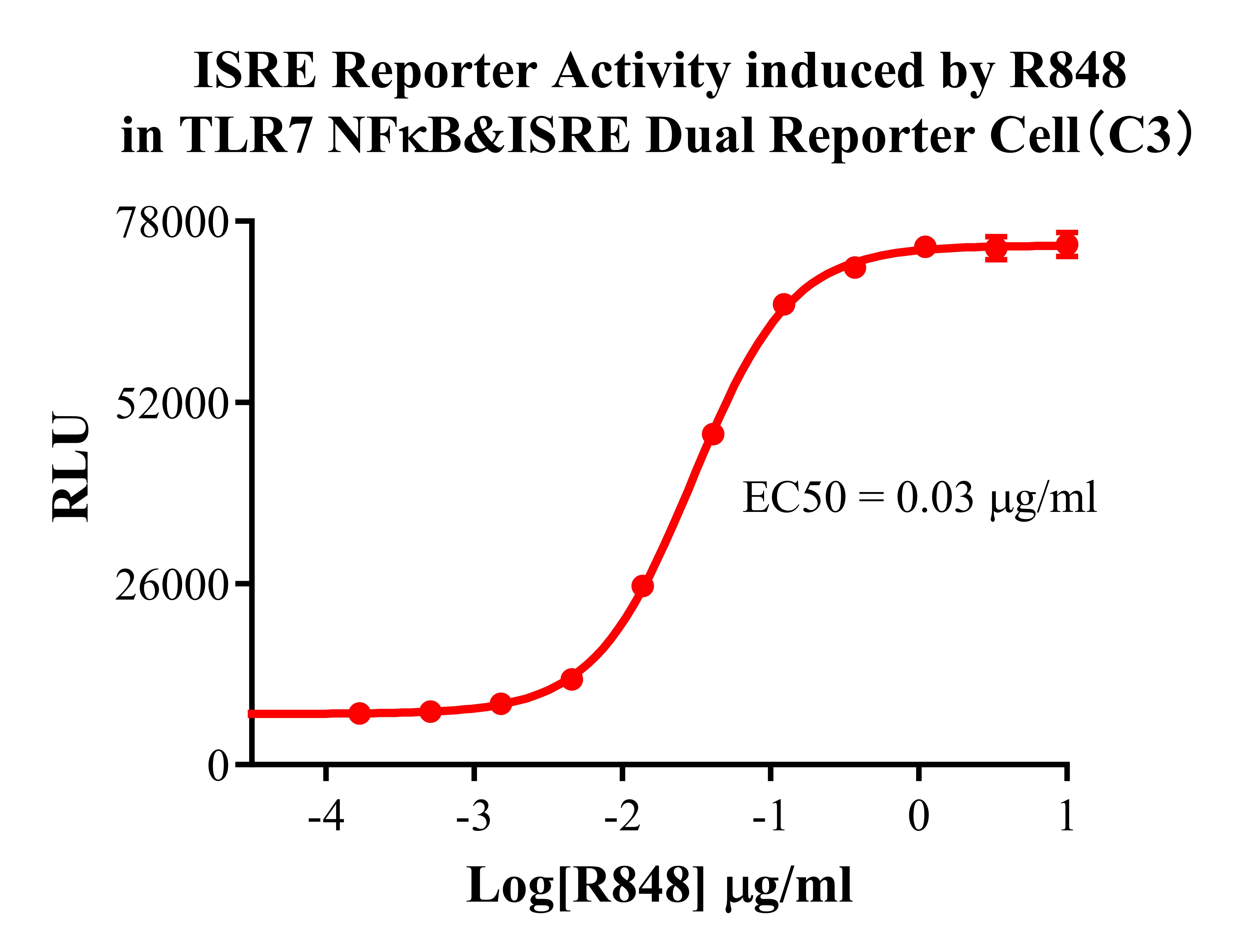 ![]() Figure 1. ISRE Reporter Activity induced by R848 in TLR7 NFκB&ISRE Dual Reporter Cell(C3). ![]() Figure 2. NFκB Reporter Activity induced by R848 in TLR7 NFκB&ISRE Dual Reporter Cell(C3). |