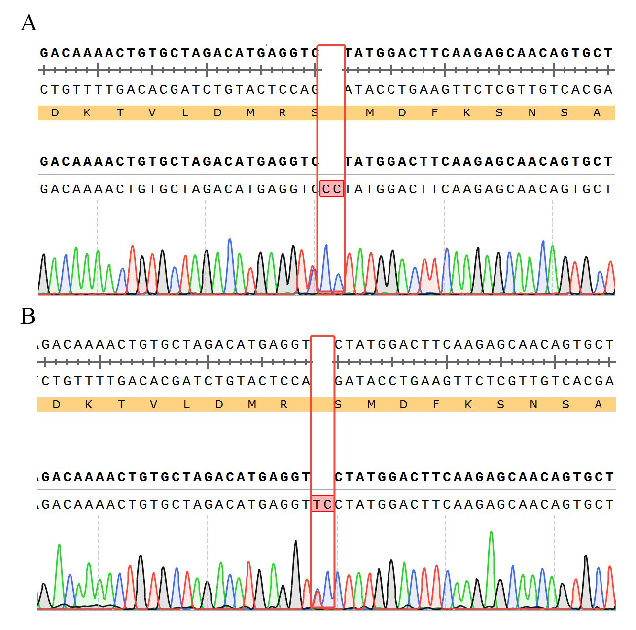 ![]() Figure 6. TRBC1 KO 的測序結果 A:chr7-142791898-TCA-C (TRBC1:p.L68Pfs*2)
