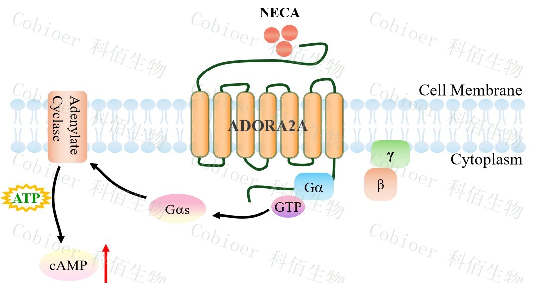cAMP 在 G 蛋白偶聯(lián)受體(GPCR)信號(hào)轉(zhuǎn)導(dǎo)中是一種關(guān)鍵的第二信使。當(dāng)配體結(jié)合 到 GPCR,構(gòu)象發(fā)生變化,激活受體接著激活 G 蛋白,Gs 的激活導(dǎo)致腺苷酸環(huán)化酶調(diào)控 cAMP 的升高。