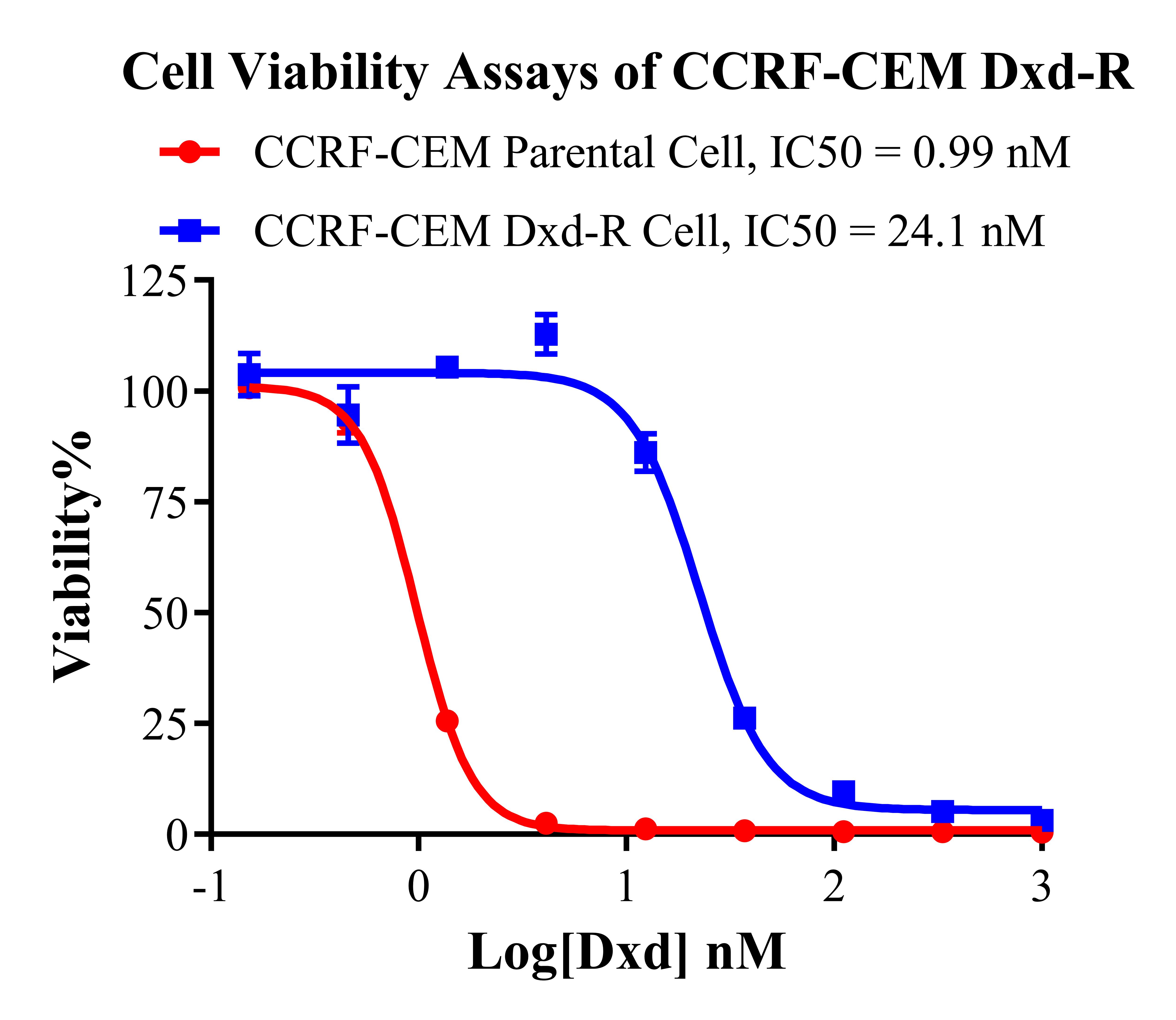 | 甲磺酸鹽 Exatecan(DXD)是一種針對 DNA 拓撲異構(gòu)酶 I 的抑制劑,屬于喜樹堿 (CPT)類化合物。DNA 拓撲異構(gòu)酶?抑制劑是目前最具前景的 ADC 有效荷載,廣泛用于 DS-8201a(Enhertu)、T-DXd 等藥物中,通過裂解單鏈 DNA、抑制拓撲異構(gòu)酶修復(fù)機制, 使得 DNA 損傷,細胞凋亡。新一代 DXD-ADC 藥物使用 DXD 作為藥物載體(payload), 它在血液中的半衰期短,有助于減少毒副作用的產(chǎn)生,且具有強大的細胞膜滲透能力,產(chǎn) 生旁觀者效應(yīng),可殺滅臨近的腫瘤細胞,半衰期縮短。 | |
