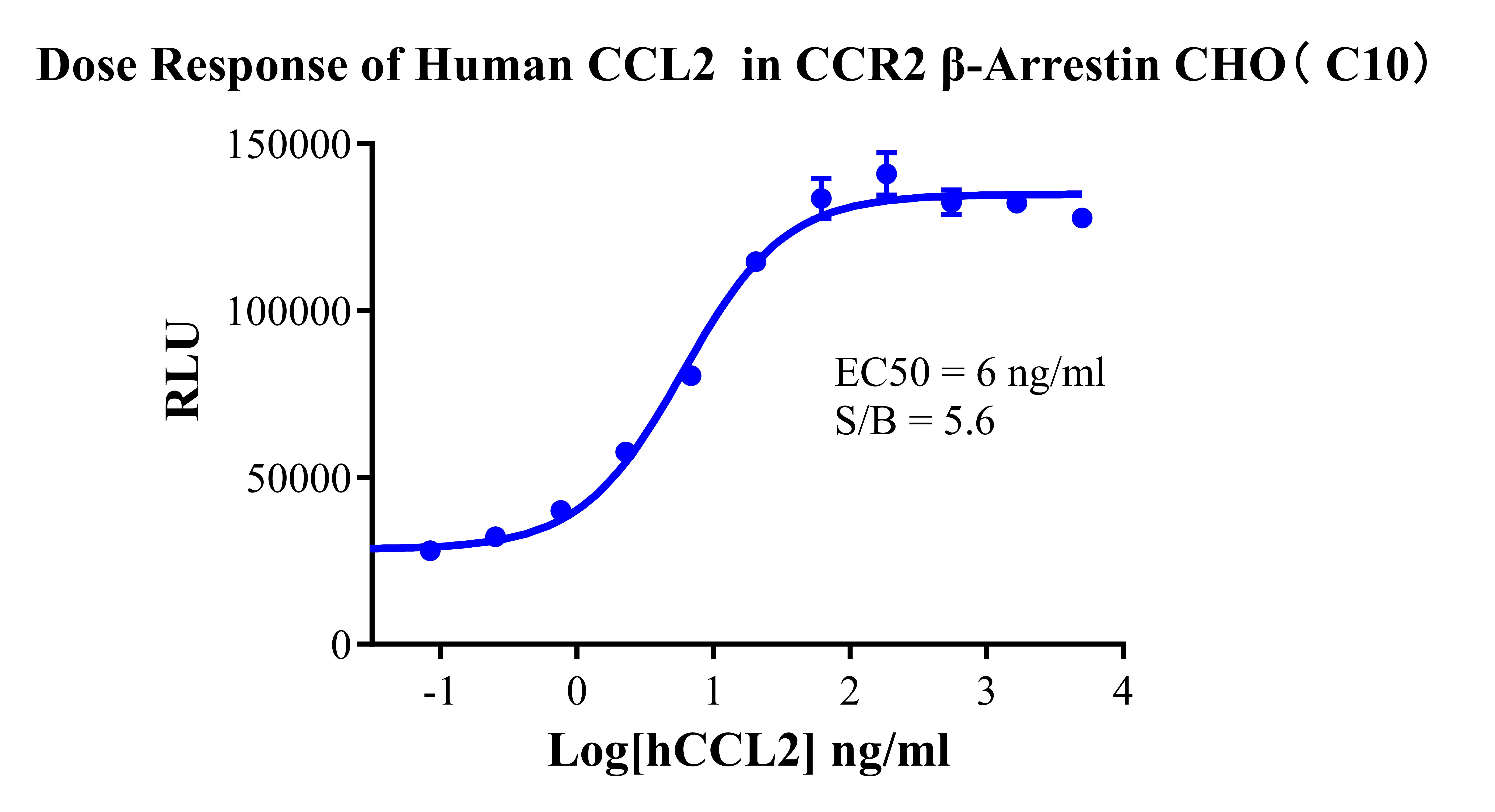 Figure 4.Inhibition of hCCL2-induced β-Arrestin Recruitment By CCL2 Neutralization Ab in CCR2 β-Arrestin CHO(C10). Inhibition of hCCL2-induced β-Arrestin Recruitment in CCR2 β-Arrestin CHO(C10). |