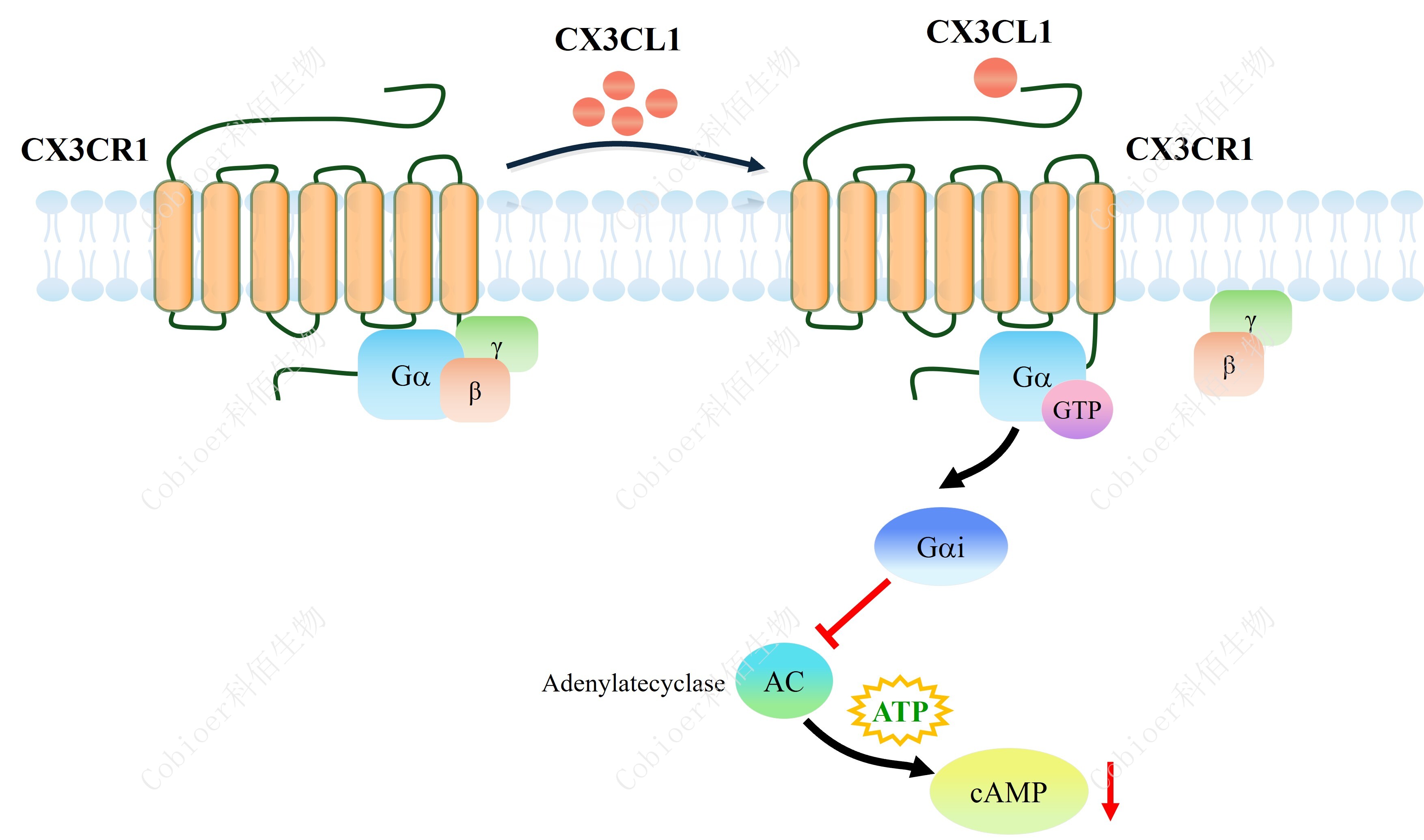 | CX3C 基序趨化因子受體 1 (CX3CR1),也稱為分形因子受體或 G 蛋白偶聯(lián)受體 13 (GPR13),是 G 蛋白偶聯(lián)受體 1 (GPCR1) 家族的跨膜蛋白,也是 CX3C 趨化因子受體亞 家族中唯一已知的成員。它是一種高度選擇性的表面受體,通常在單核細(xì)胞、CD4 T 細(xì)胞、 CD8 T 細(xì)胞、NK 細(xì)胞和 γδ 細(xì)胞上表達(dá)。CX3CL1 是一種獨(dú)特的趨化因子,可與其唯一受體 CX3CR1結(jié)合。 CX3CR1-CX3CL1細(xì)胞內(nèi)信號(hào)級(jí)聯(lián)負(fù)責(zé)調(diào)節(jié)細(xì)胞活性,使其達(dá)到更高的活性狀態(tài),如存活、遷移和增殖等。 |