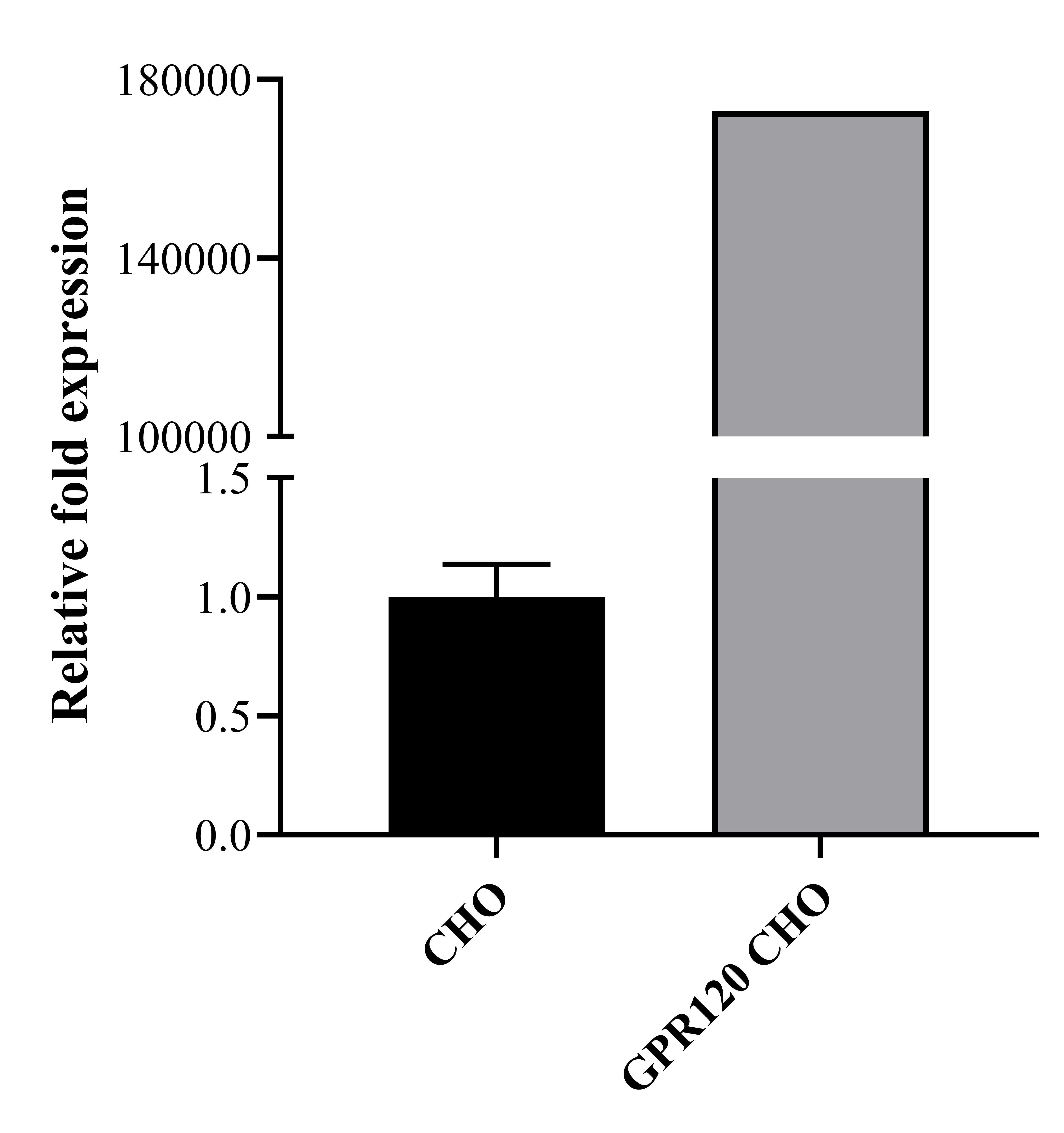 GPR120 與配體結(jié)合,導(dǎo)致 Gαq 亞基的激活,觸發(fā) PLC-γ,從而產(chǎn)生兩個第二信使: IP3 和 DAG,它們參與細(xì)胞內(nèi)鈣動員。GPR120 CHO 細(xì)胞藥靶模型很好的模擬了體內(nèi) GPR120 的信號轉(zhuǎn)導(dǎo)過程,原理見下圖所示。![]() Figure 1. GPR120 CHO 細(xì)胞模型原理圖 |