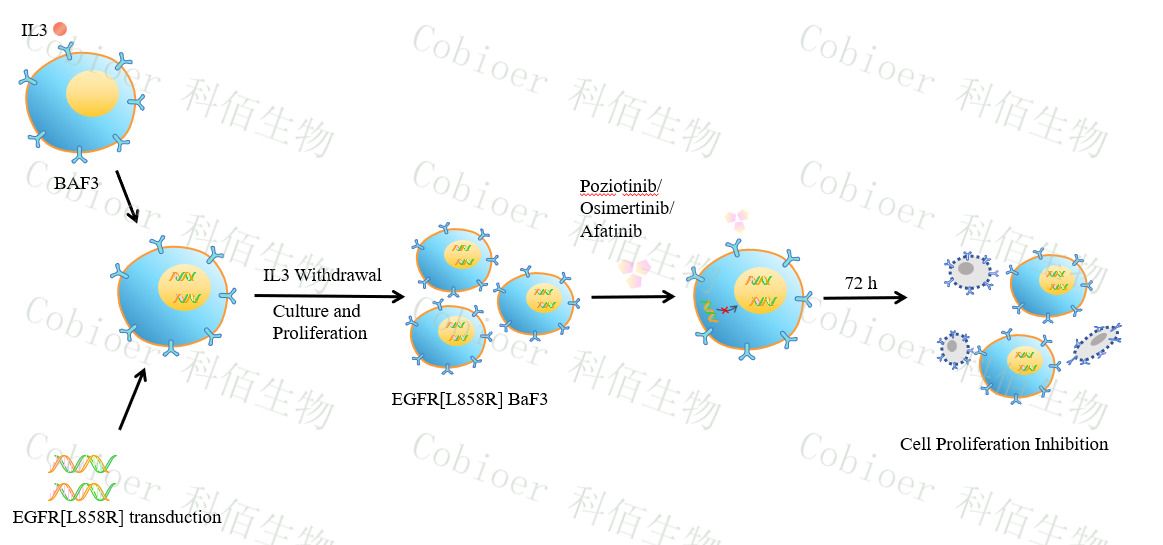 BaF3(小鼠原 B 細(xì)胞)的生長和增殖需要 IL-3 的維持。通過引入各種表達(dá)激酶的基因, 能作為 BaF3 的驅(qū)動(dòng)基因,讓 BaF3 不再依賴 IL-3 而增殖,進(jìn)而激酶基因成為 BaF3 增殖依 賴的驅(qū)動(dòng)基因,用于評(píng)估小分子藥物對激酶的靶向抑制作用,原理及流程見下圖所示。