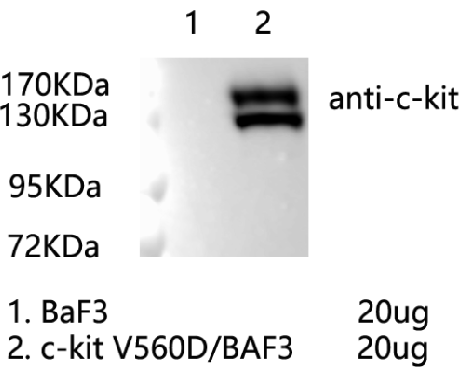 KIT V560D lies within the juxtamembrane domain (exon 11) of the Kit protein (PMID: 19164557). V560D confers a gain of function on Kit, as indicated by constitutive phosphorylation of Kit in cell culture (PMID: 16954519, PMID: 20633291). |