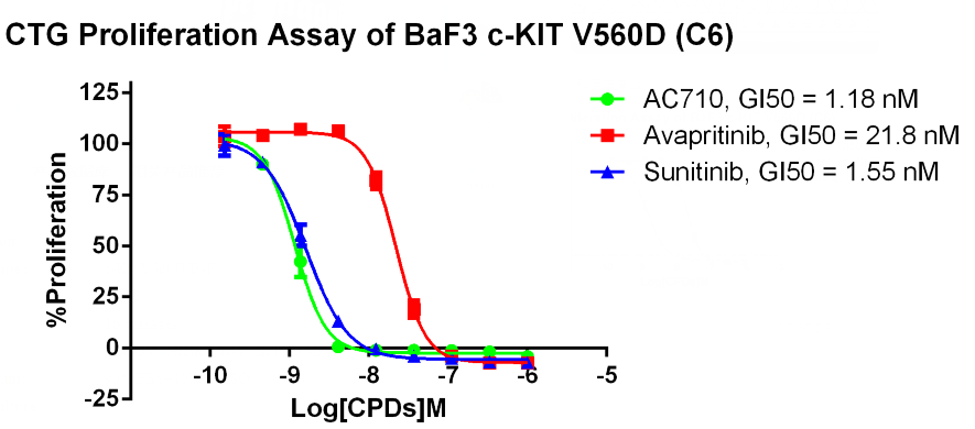 Figure 3. CTG Proliferation Assay of BaF3 C-KIT V560D (C6). |