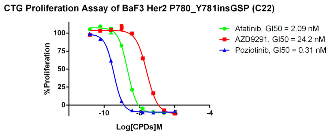 Figure 2.CTG Proliferation Assay of BaF3 Her2 P780_ Y781insGSP (C22).