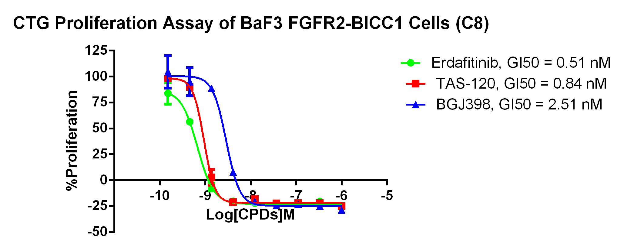 Figure 3. CTG Proliferation Assay of BaF3 FGFR2-BICC1 Cells (C8).