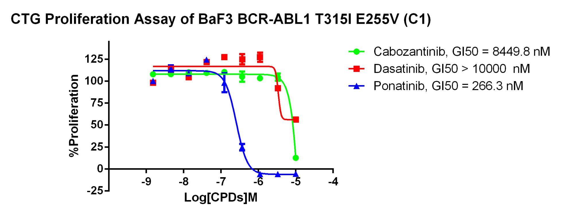 Figure 5. CTG Proliferation Assay of BaF3 BCR-ABL1 T315I E255V (C1).