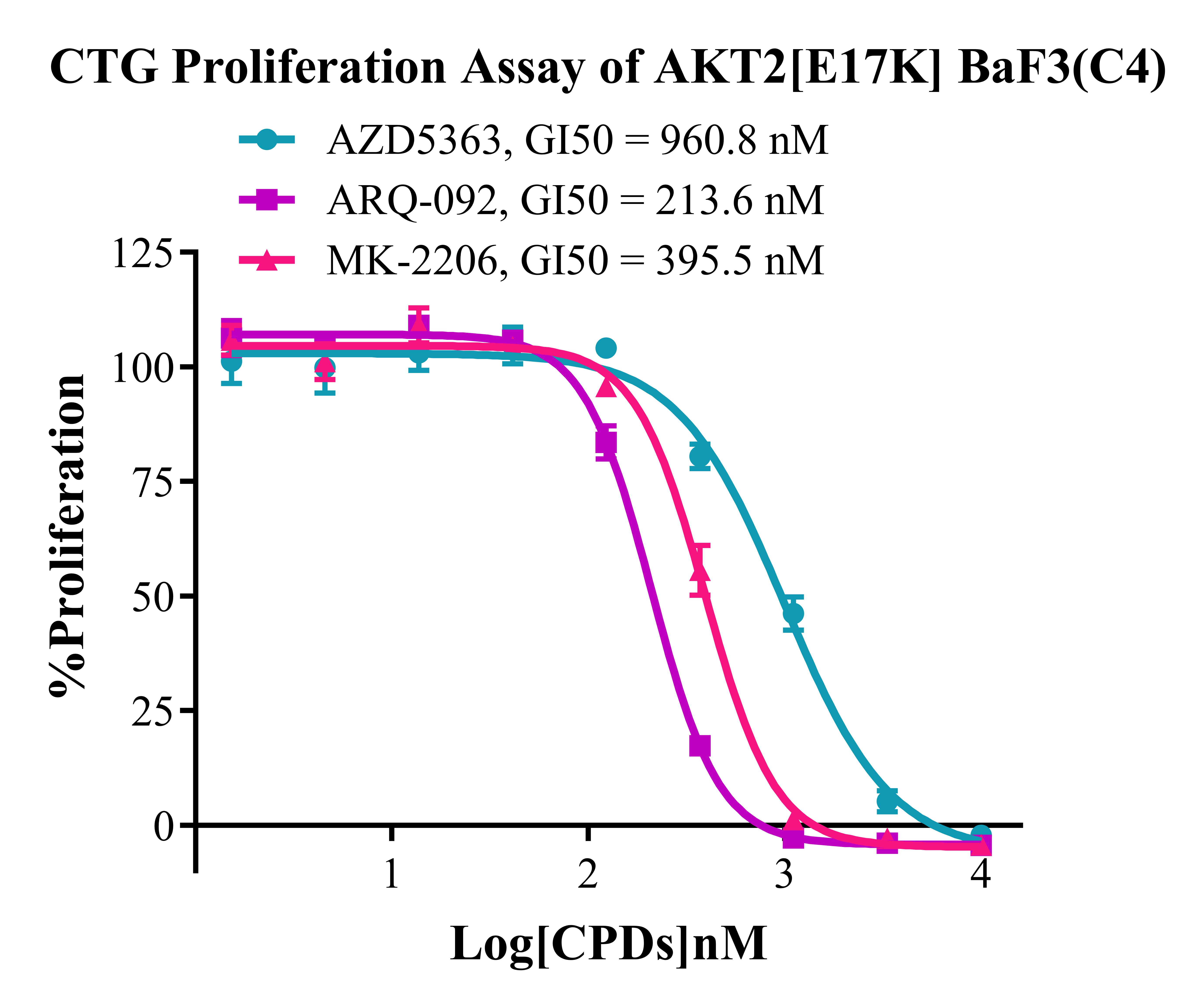 BaF3(小鼠原 B 細胞)的生長和增殖需要 IL-3 的維持。通過引入各種表達激酶的基因, 能作為 BaF3 的驅動基因,讓 BaF3 不再依賴 IL-3 而增殖,進而激酶基因成為 BaF3 增殖依賴的驅動基因,用于評估小分子藥物對激酶的靶向抑制作用,原理及流程見下圖所示。