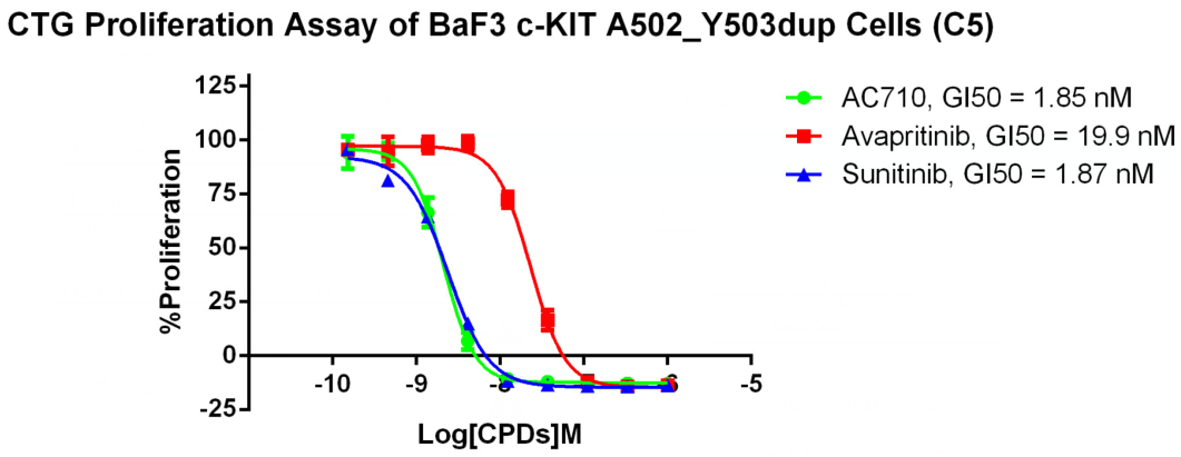 Figure 4. CTG Proliferation Assay of BaF3 C-KIT A502 _Y503dup Cells (C5).