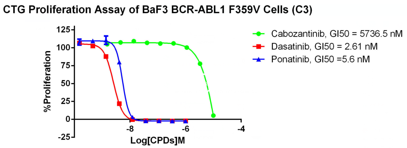 Figure 4. CTG Proliferation Assay of BaF3 BCR-ABL1 F359V Cells (C3).