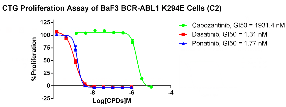 Figure 4. CTG Proliferation Assay of BaF3 BCR-ABL1 K294E Cells (C2). |