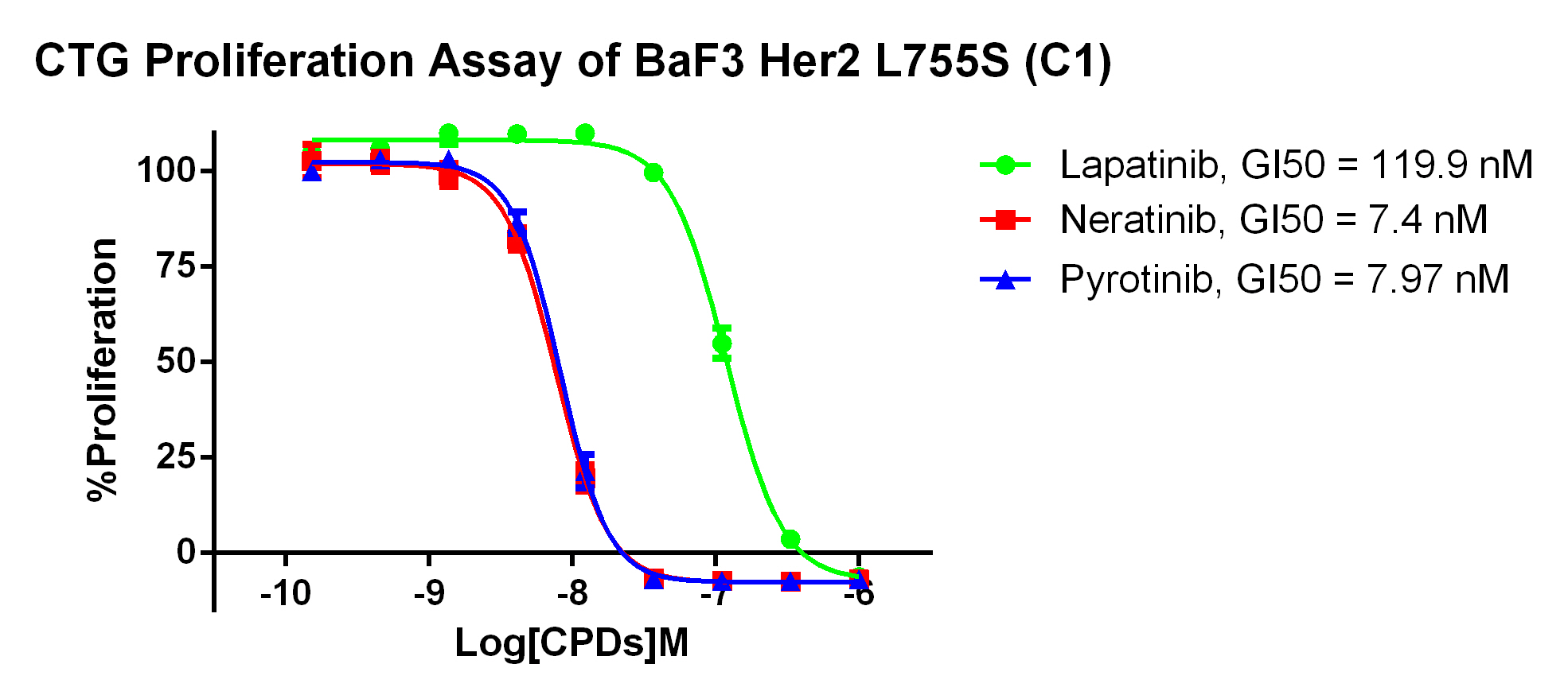 Figure 2. CTG Proliferation Assay of BaF3 Her2 L755S (C1).