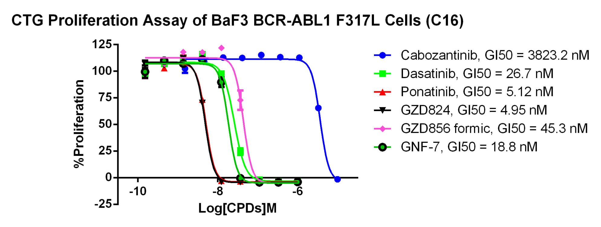 Figure 4. CTG Proliferation Assay of BaF3 BCR-ABL1 F317L Cells (C16). |