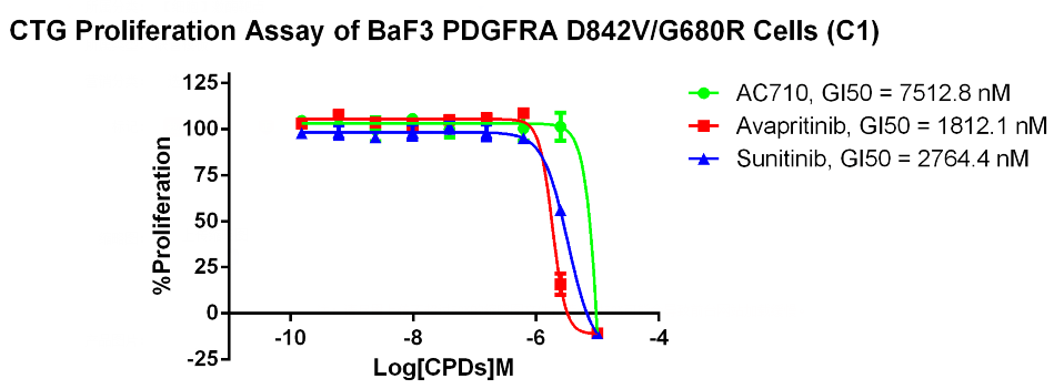 Figure 3. CTG Proliferation Assay of BaF3 PDGFRA D842V/G680R Cells (C1). |