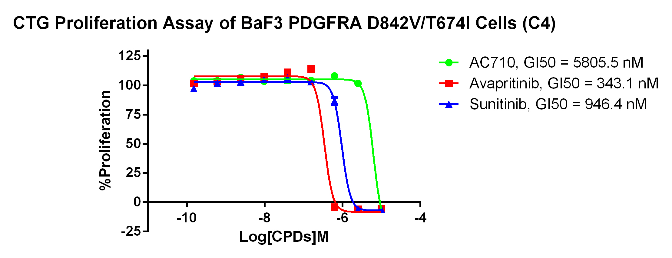 Figure 3. CTG Proliferation Assay of BaF3 PDGFRA D842V/T674I Cells (C4).