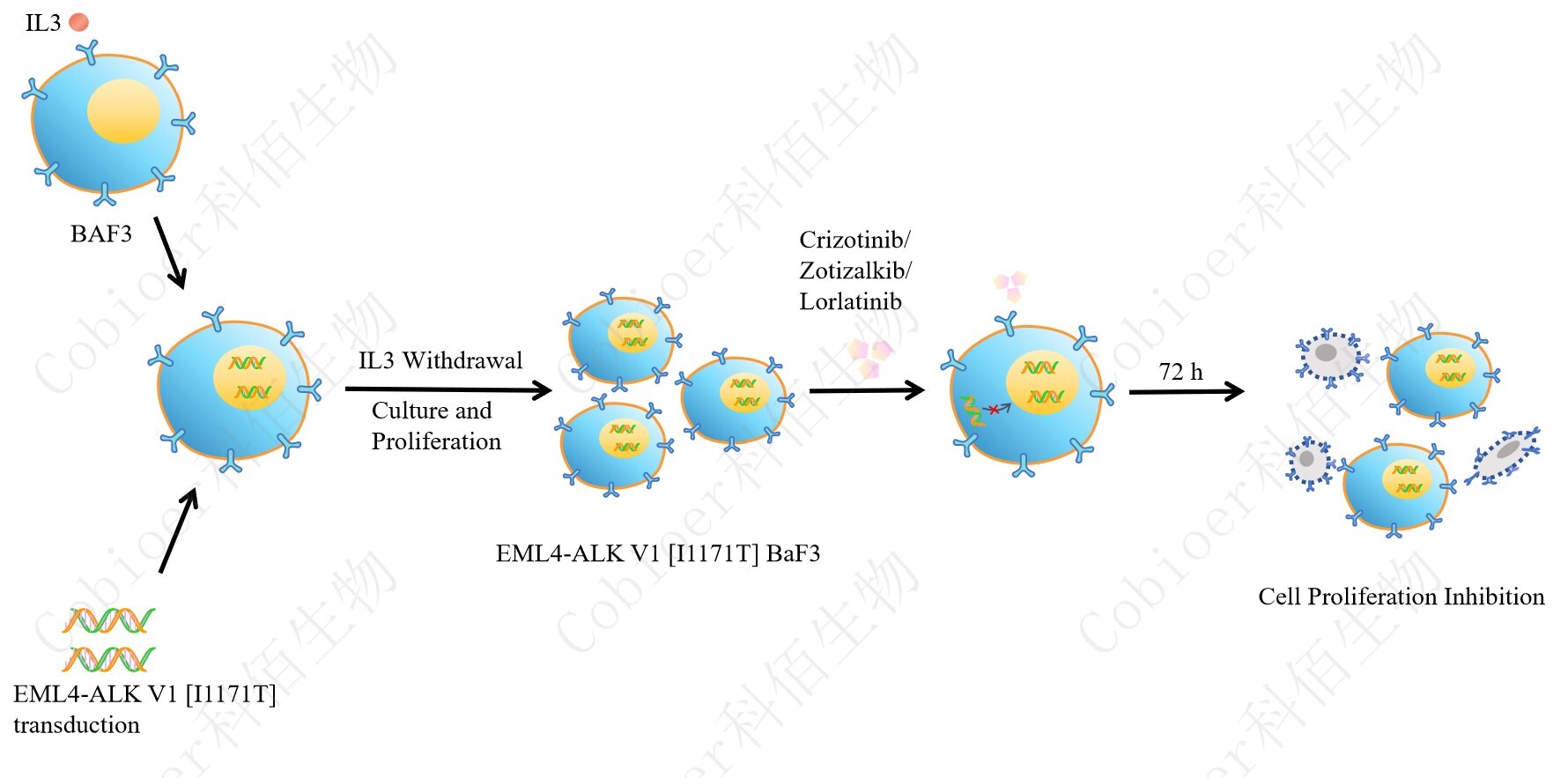 BaF3(小鼠原 B 細(xì)胞)的生長和增殖需要 IL-3 的維持。通過引入各種表達(dá)激酶的基因, 能作為 BaF3 的驅(qū)動基因,讓 BaF3 不再依賴 IL-3 而增殖,進(jìn)而激酶基因成為 BaF3 增殖依 賴的驅(qū)動基因,用于評估小分子藥物對激酶的靶向抑制作用,原理及流程見下圖所示。