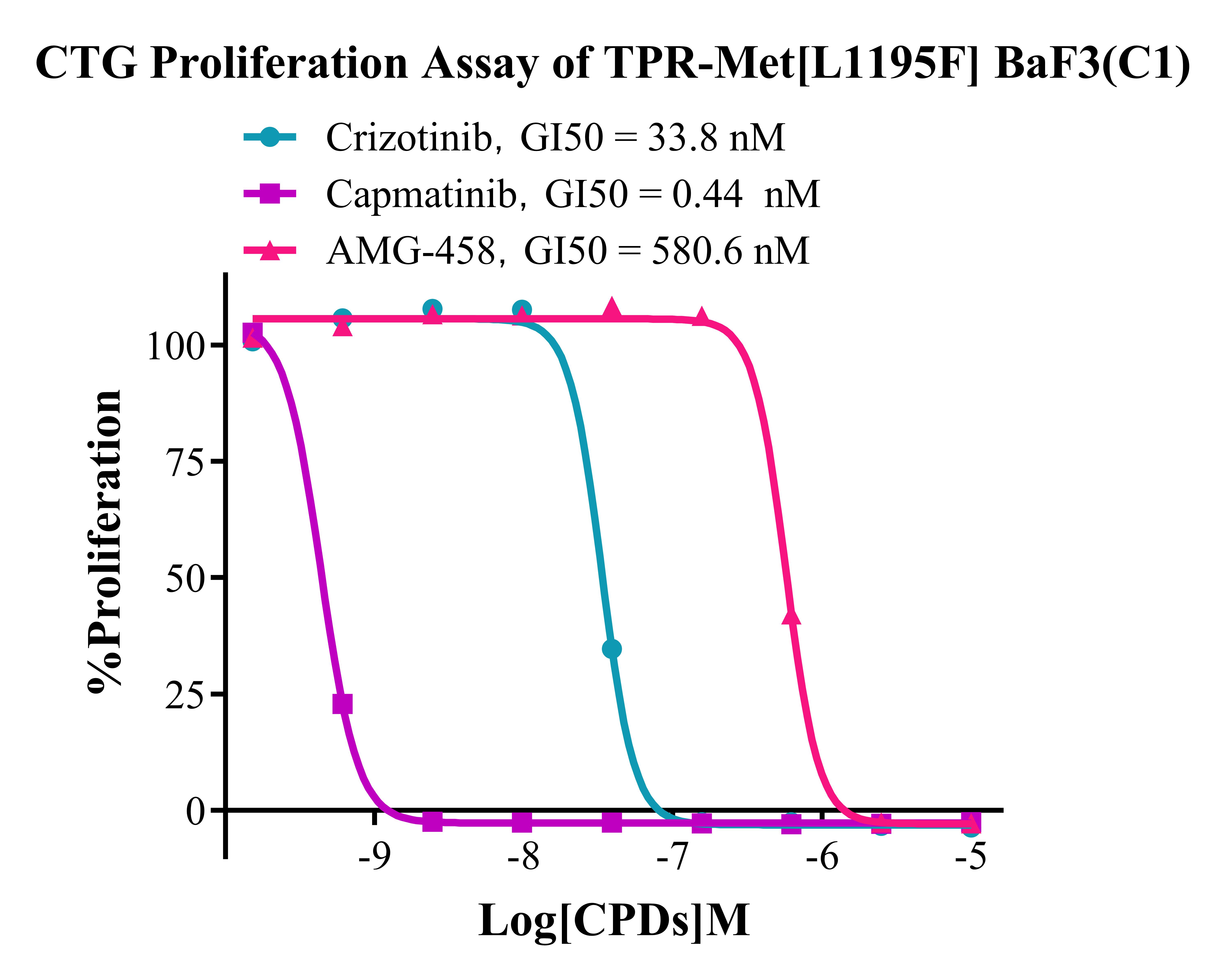 3. Anti-proliferation assay Figure 5. CTG Proliferation Assay of TPR-Met [L1195F] BaF3 (C1). |