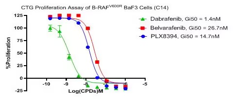 Figure 3. CTG Proliferation Assay of B-RAF V600R BaF3 Cells (C14). |