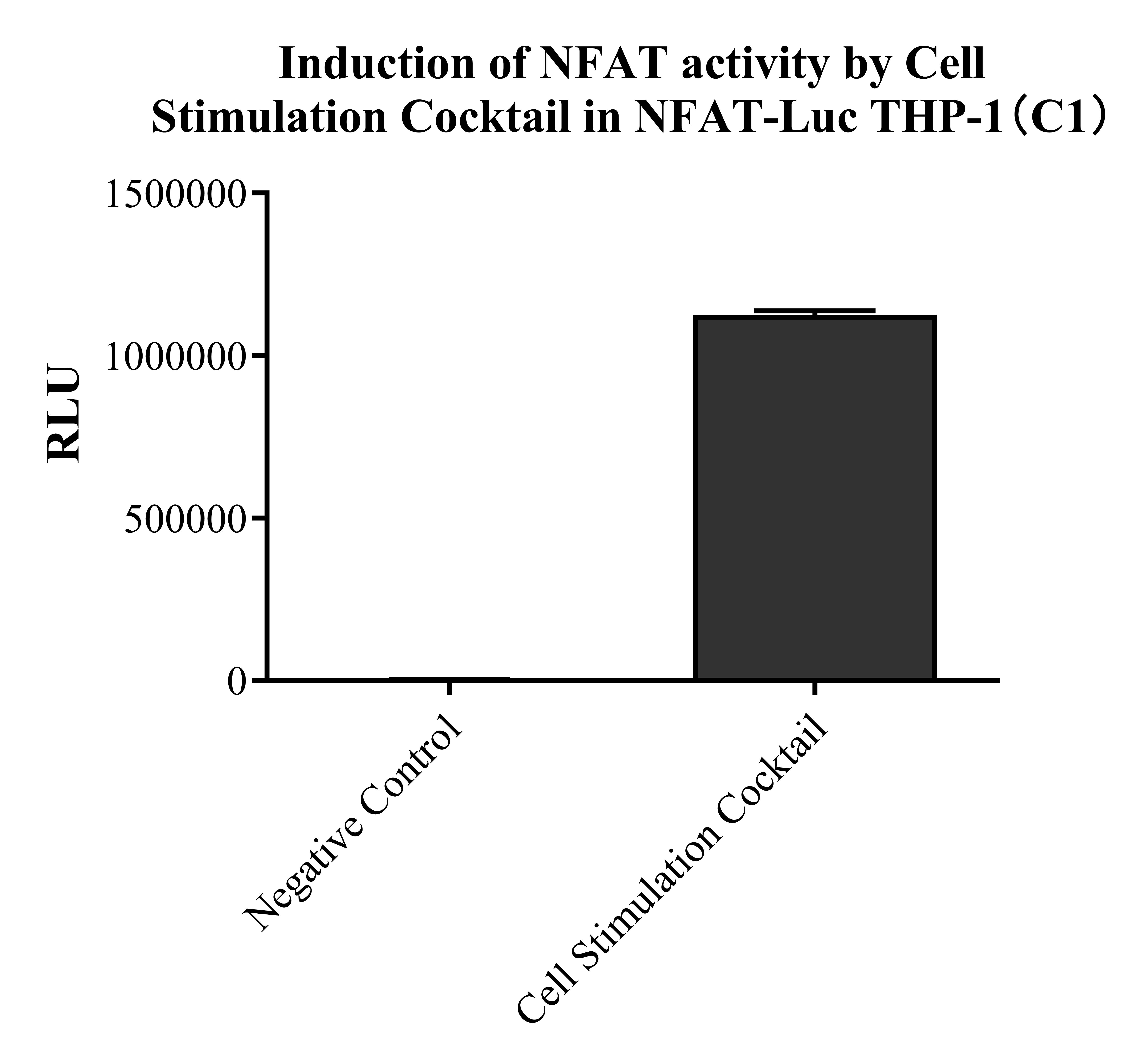 NFAT-Luc THP-1 報告基因藥靶模型很好的模擬了體內(nèi) NFAT 的信號轉(zhuǎn)導過程,原理見下圖所示。![]() Figure 1. NFAT Stimulation Assay 驗證結(jié)果 |