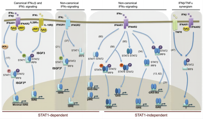 Description: pISGF3G.48 RE-Luc is designed for monitoring the induction of STAT1::STAT2::IRF9.IRF9 Transcription factor that mediates signaling by type I IFNs (IFN-alpha and IFN-beta). Following type I IFN binding to cell surface receptors, Jak kinases (TYK2 and JAK1) are activated, leading to tyrosine phosphorylation of STAT1 and STAT2. IRF9/ISGF3G associates with the phosphorylated STAT1:STAT2 dimer to form a complex termed ISGF3 transcription factor, that enters the nucleus. ISGF3 binds to the IFN stimulated response element (ISRE) to activate the transcription of interferon stimulated genes, which drive the cell in an antiviral state. Belongs to the IRF family.