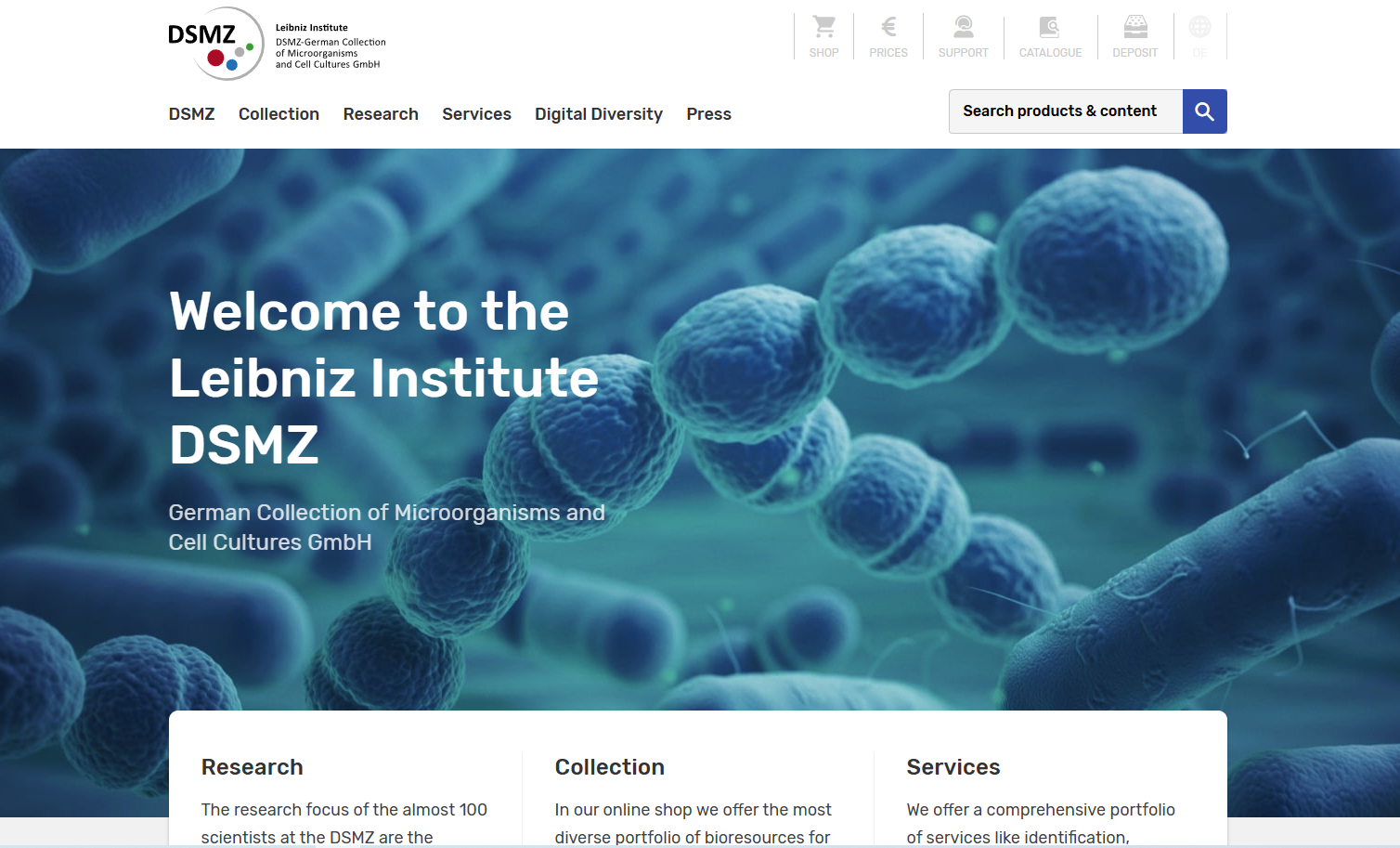 DSMZ成立于1969年,是德國(guó)的國(guó)家菌種保藏中心。該中心一直致力于細(xì)菌、真菌、質(zhì)粒、抗菌素、人體和動(dòng)物細(xì)胞、植物病毒等的分類、鑒定和保藏工作。作為世界上最大的保藏中心之一,DSMZ目前收藏超過(guò)70,000種產(chǎn)品,包括約31,000種不同的細(xì)菌和6,500種真菌菌株,830種人和動(dòng)物細(xì)胞系,1,500種植物病毒和抗血清,2,000種質(zhì)粒和噬菌體以及13,000種不同類型的細(xì)菌基因組DNA。